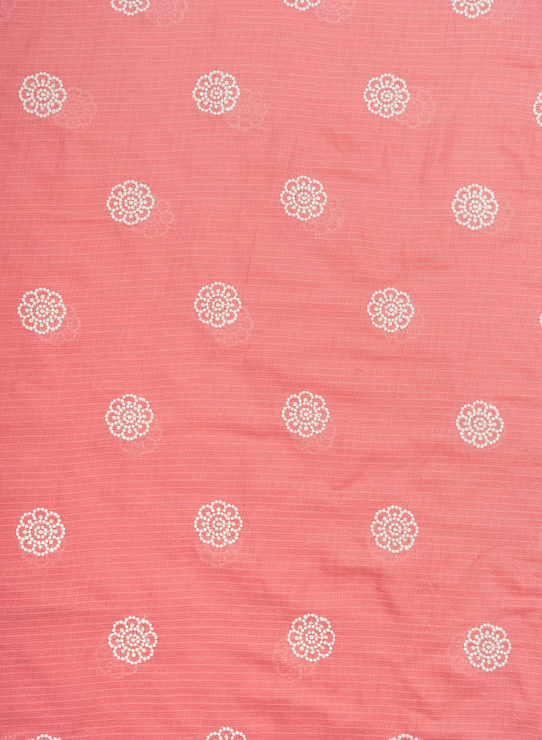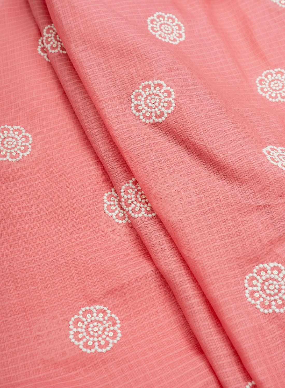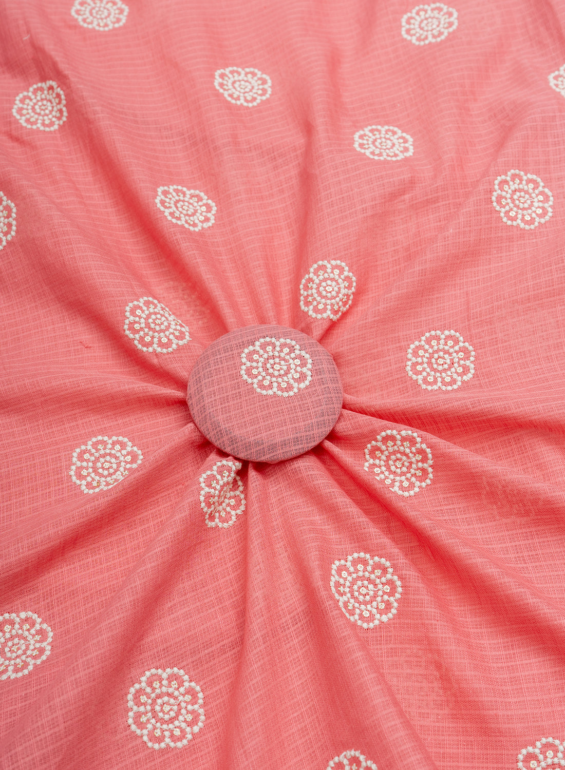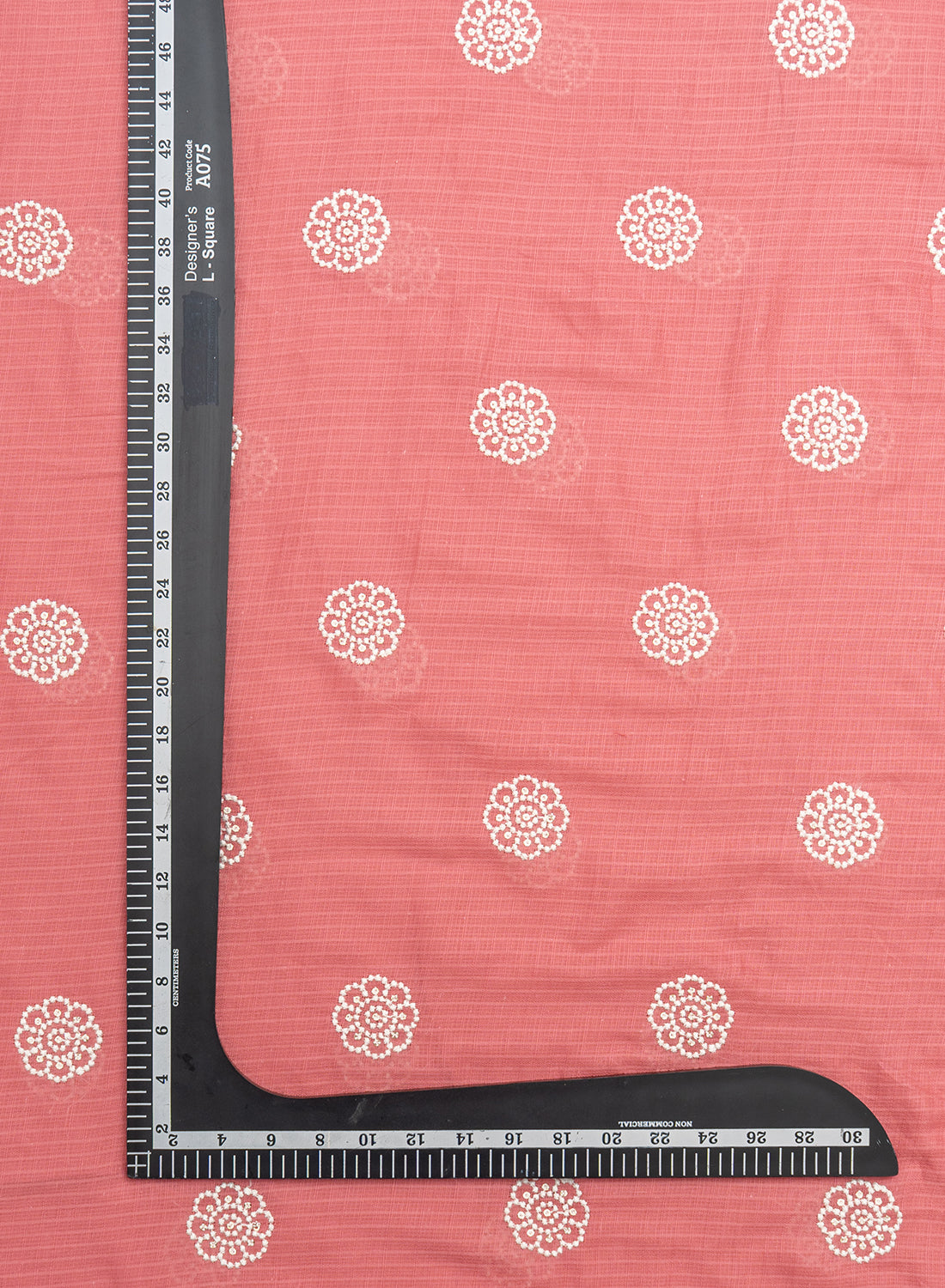 Cotton Kota Checks Mauve Pink Color Thread Work Floral Embroidery Fabric.
