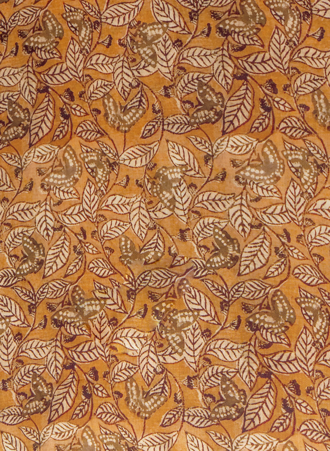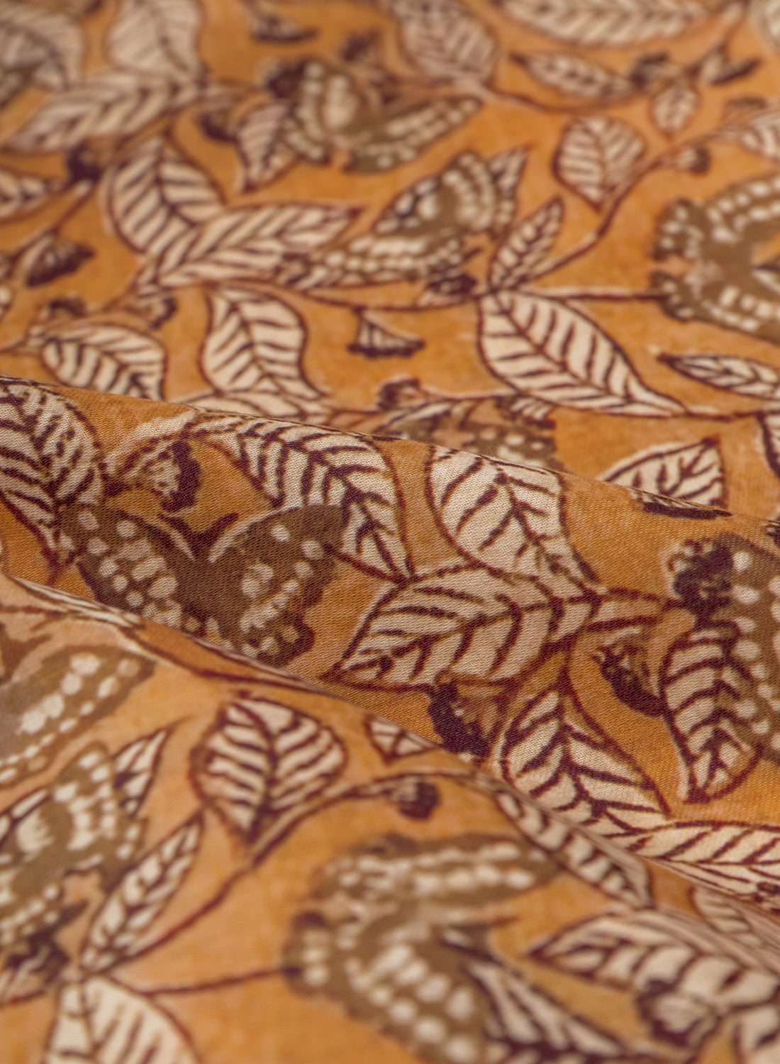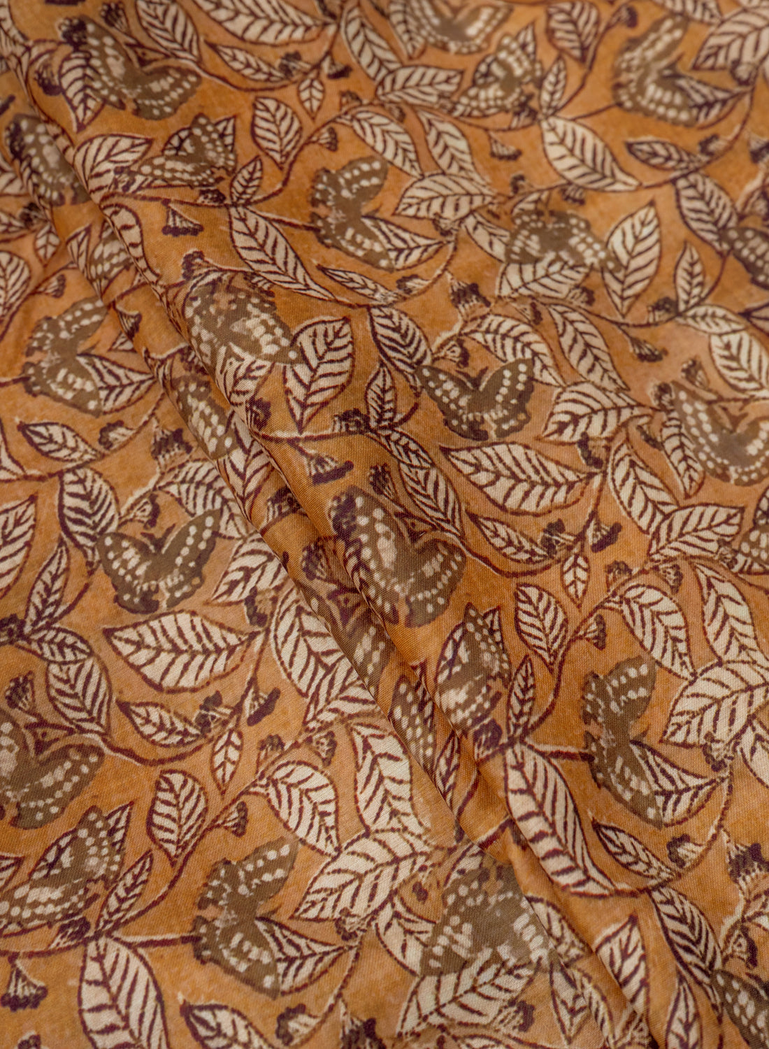Premium Cotton Mulmul Light Brown Color Floral Digital Print Fabric.