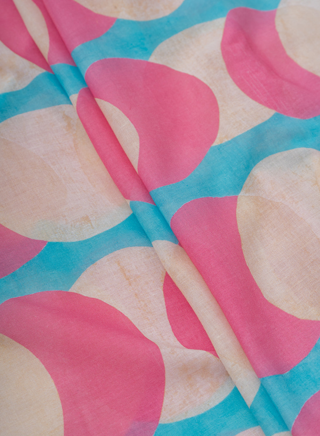 Premium Cotton Mulmul Multi Color Circle Digital Print Fabric.