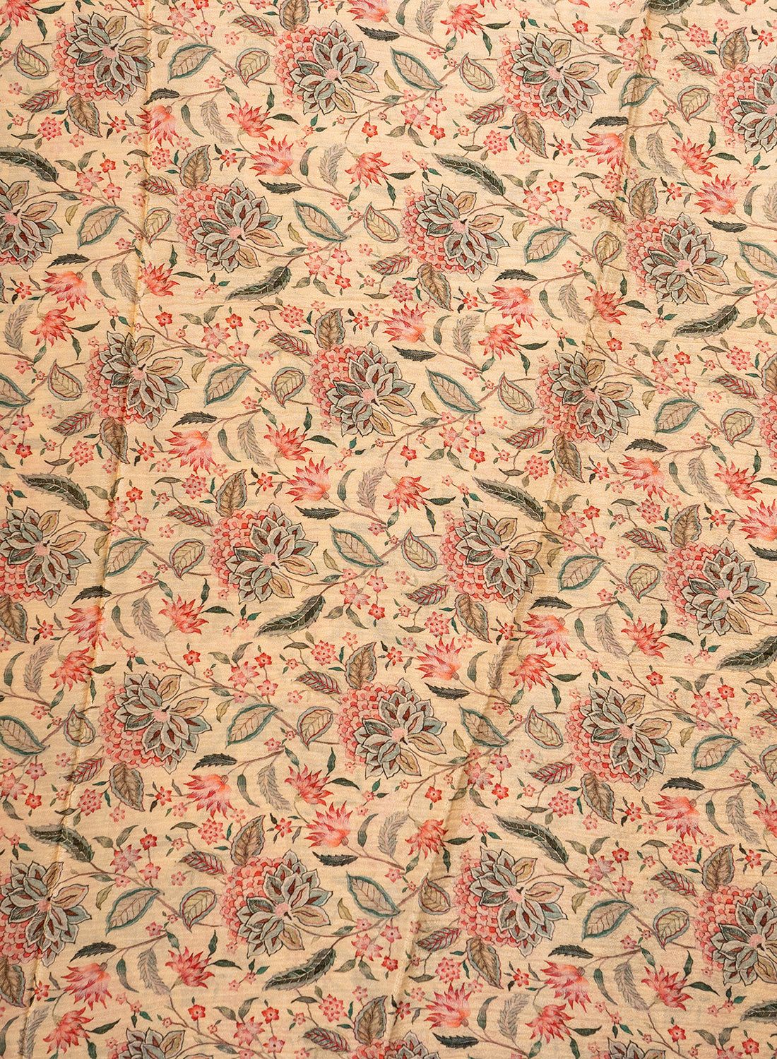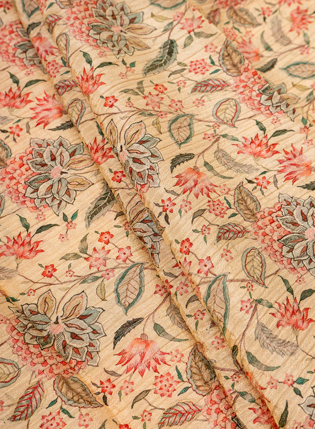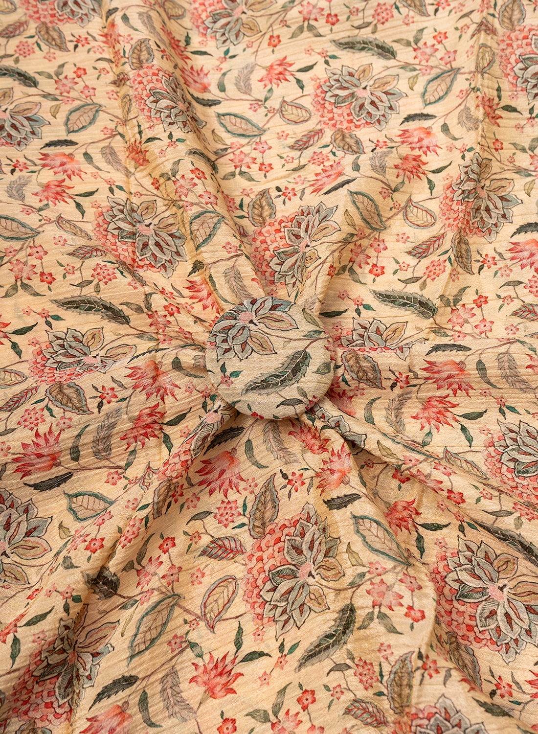 Crush Tissue Cream Color Floral Digital Print Fabric