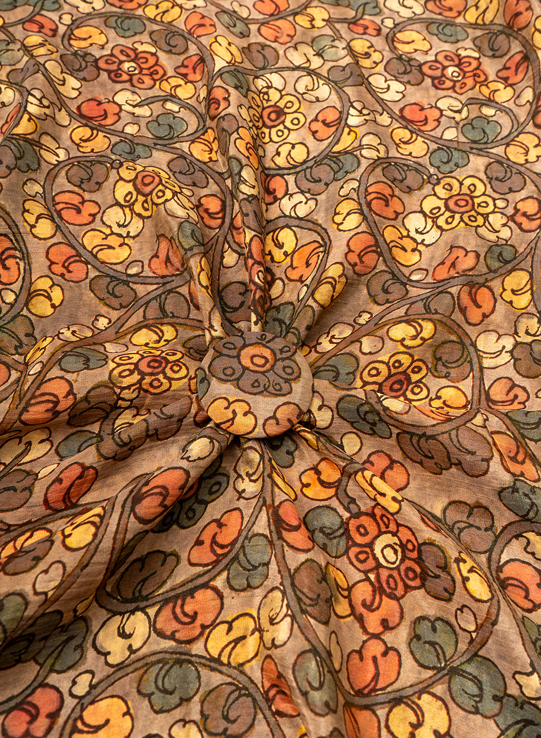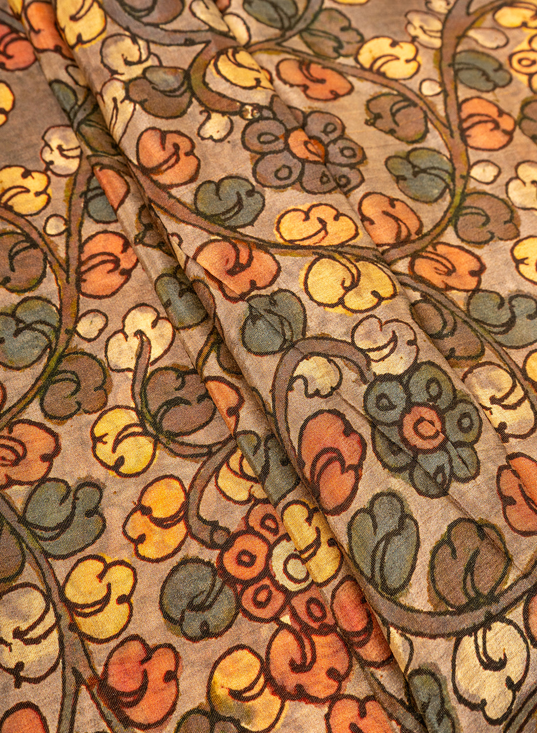 Crush Tissue Greyish Brown Color Kalamkari Digital Print Fabric