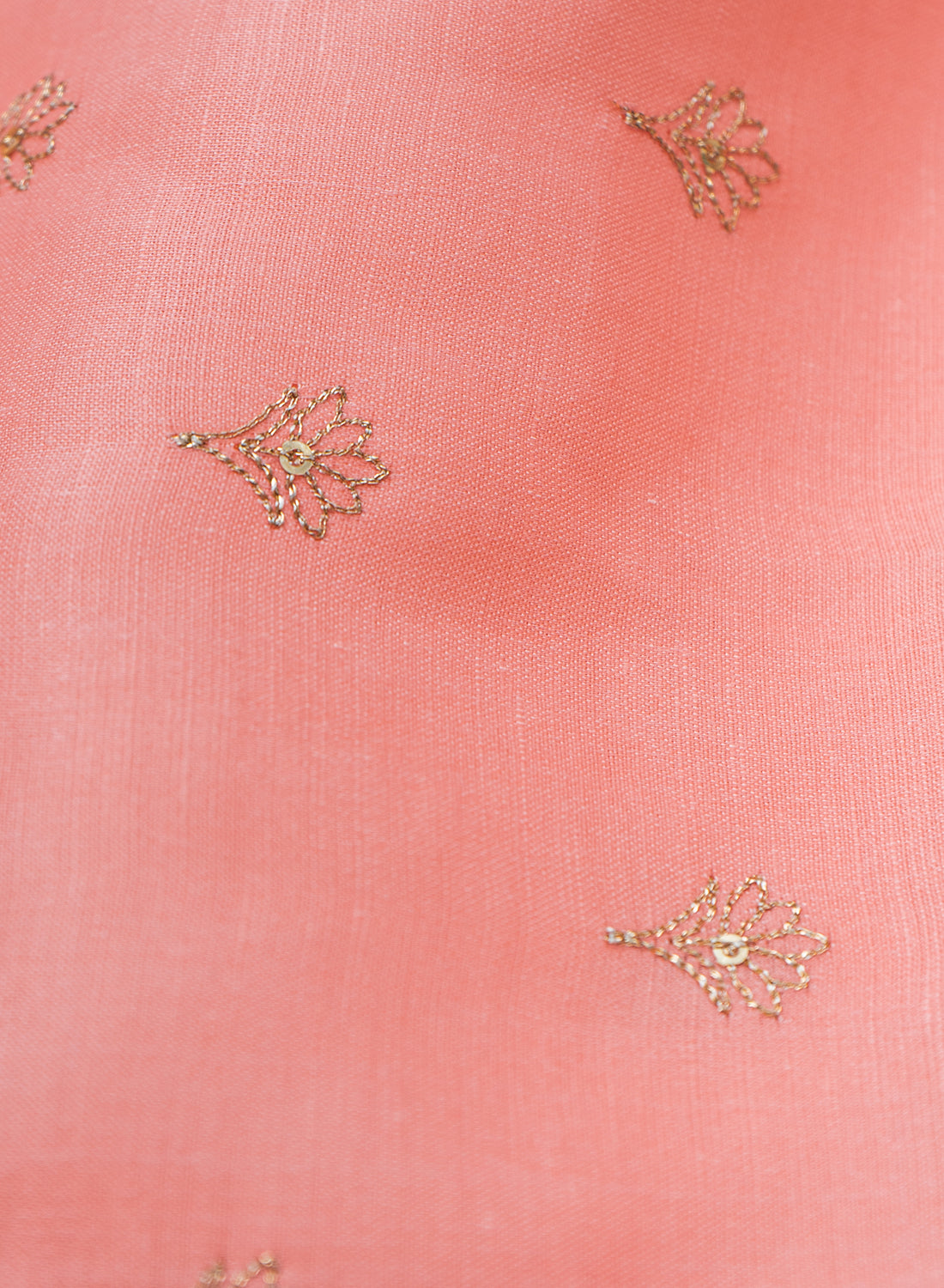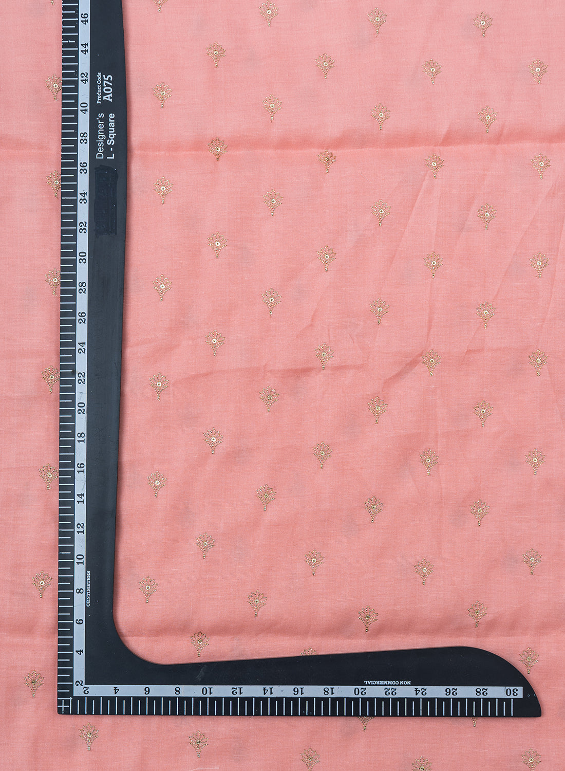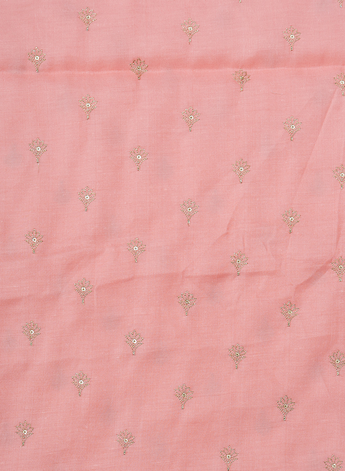 Linen Satin Light Peach Color With Zari Butti Embroidery