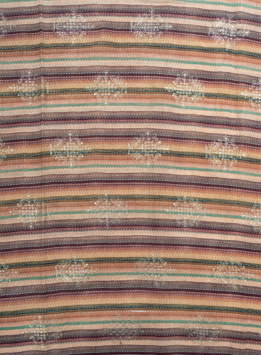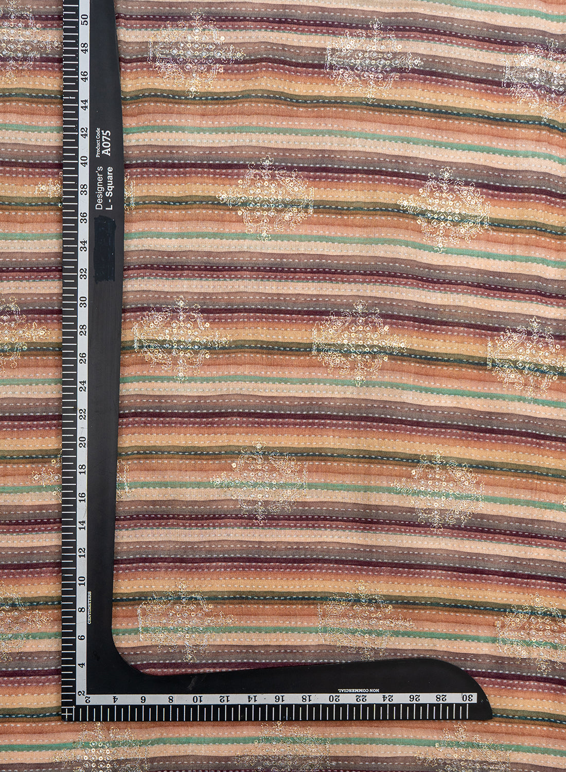 Linen Multi Color Digital Print With Sequins And Zari embroidery fabric.
