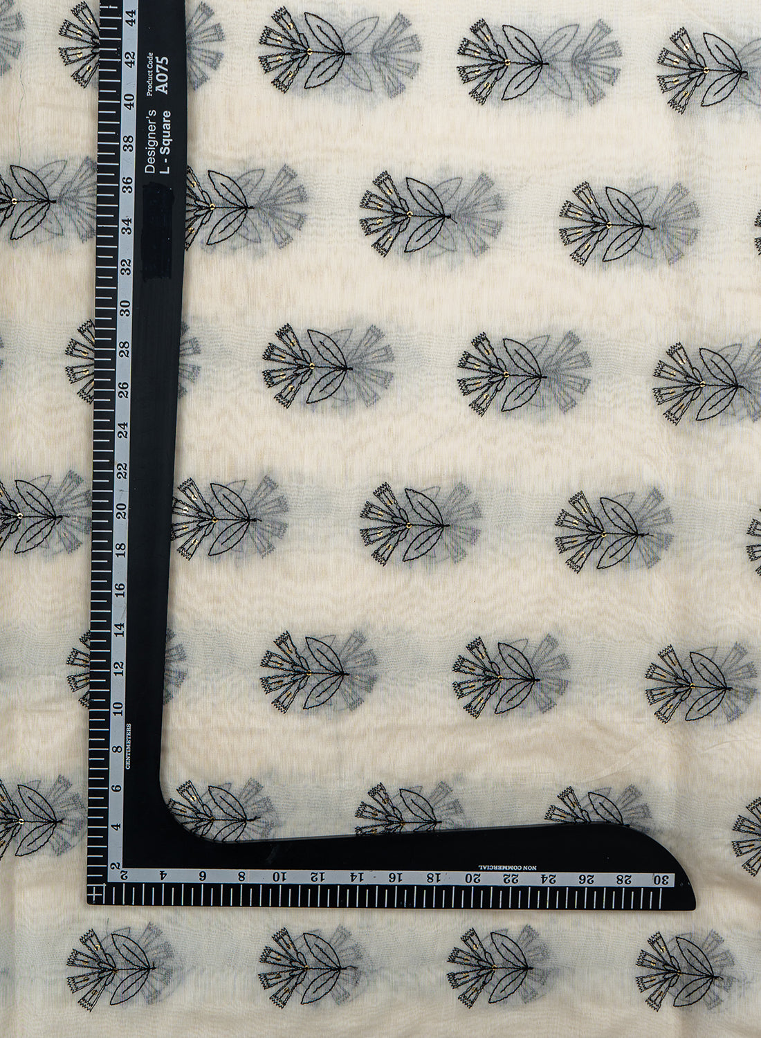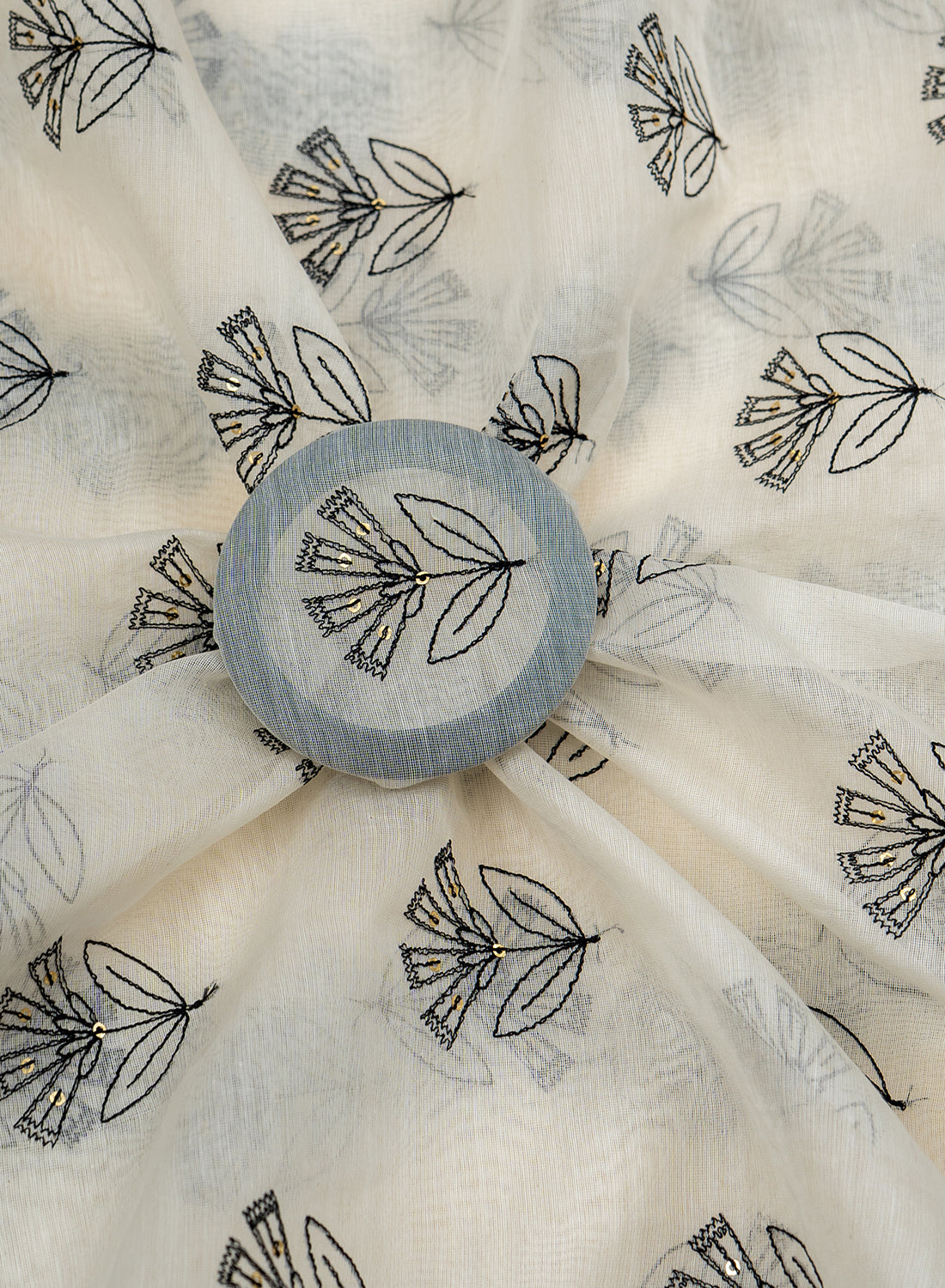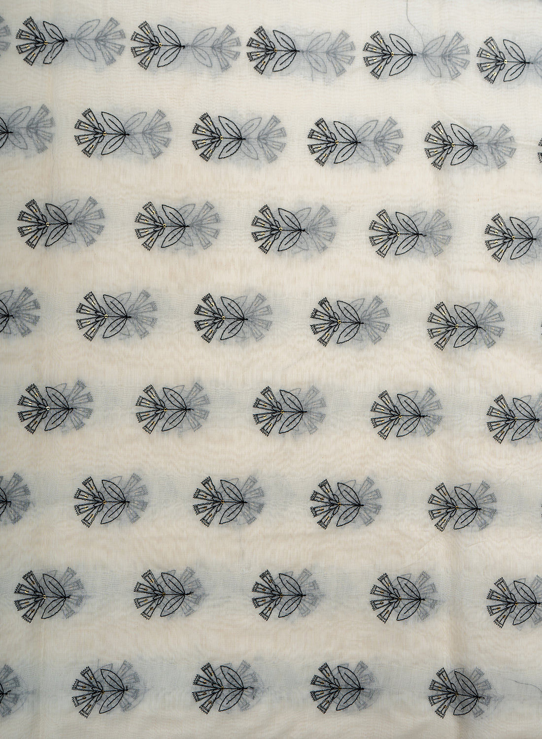 Mul Chanderi Dyeable Floral Pattern Embroidery Fabric.