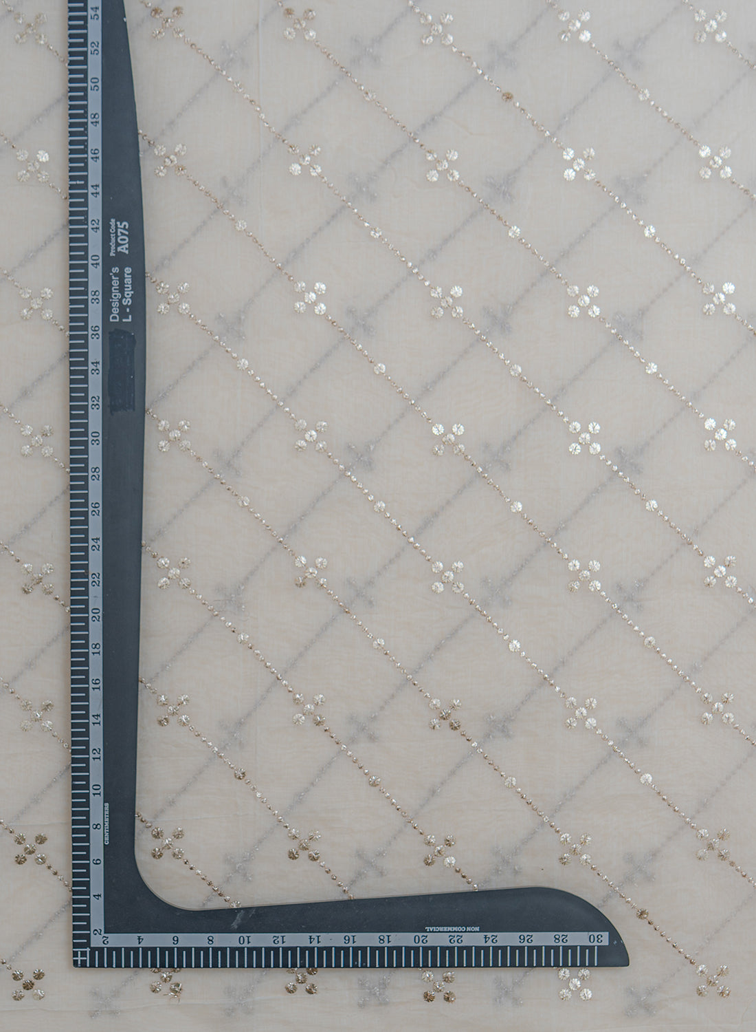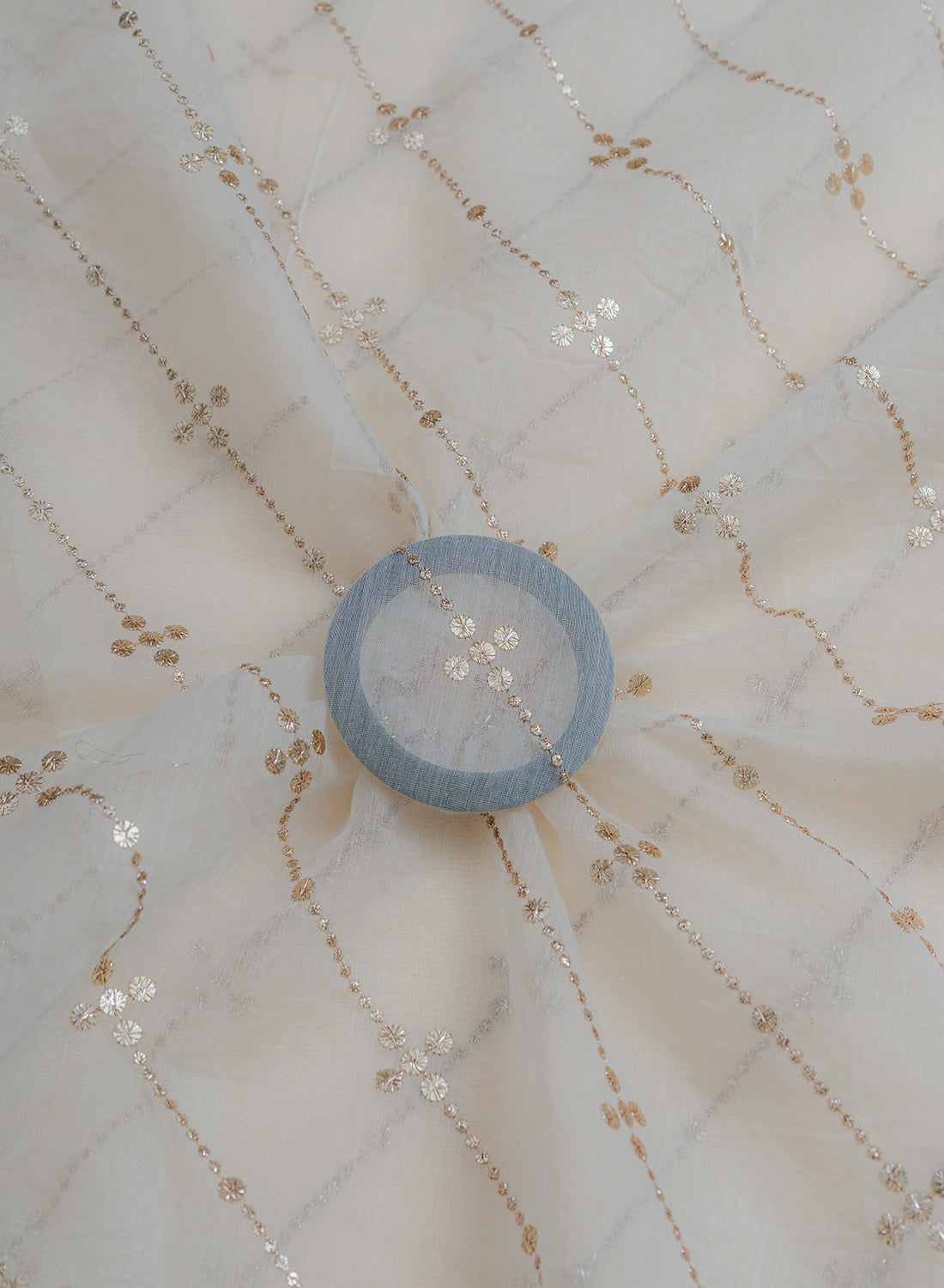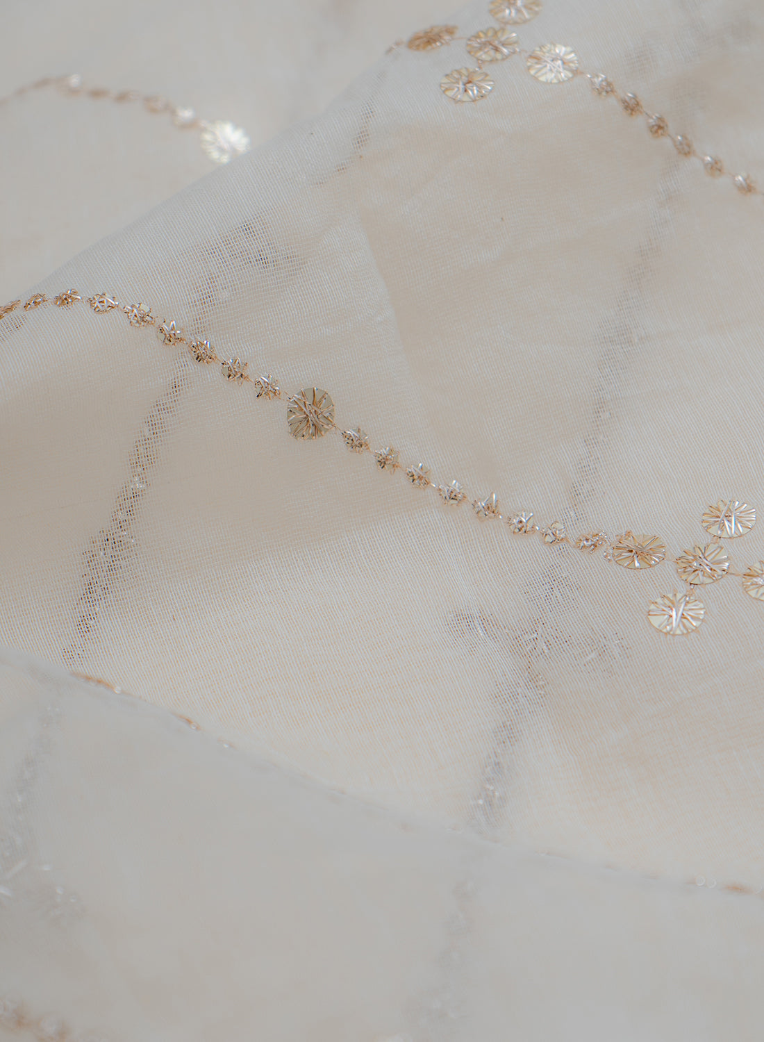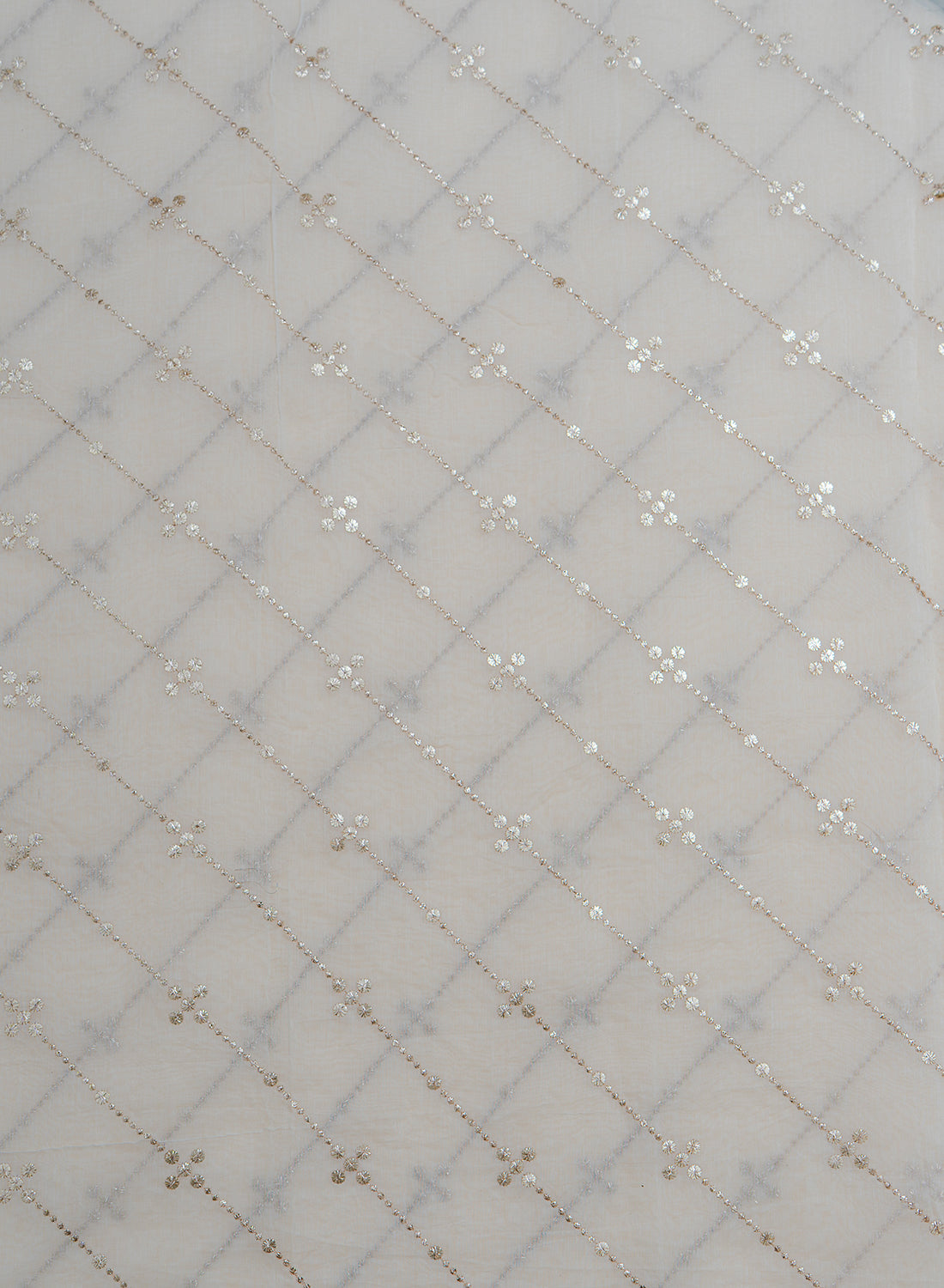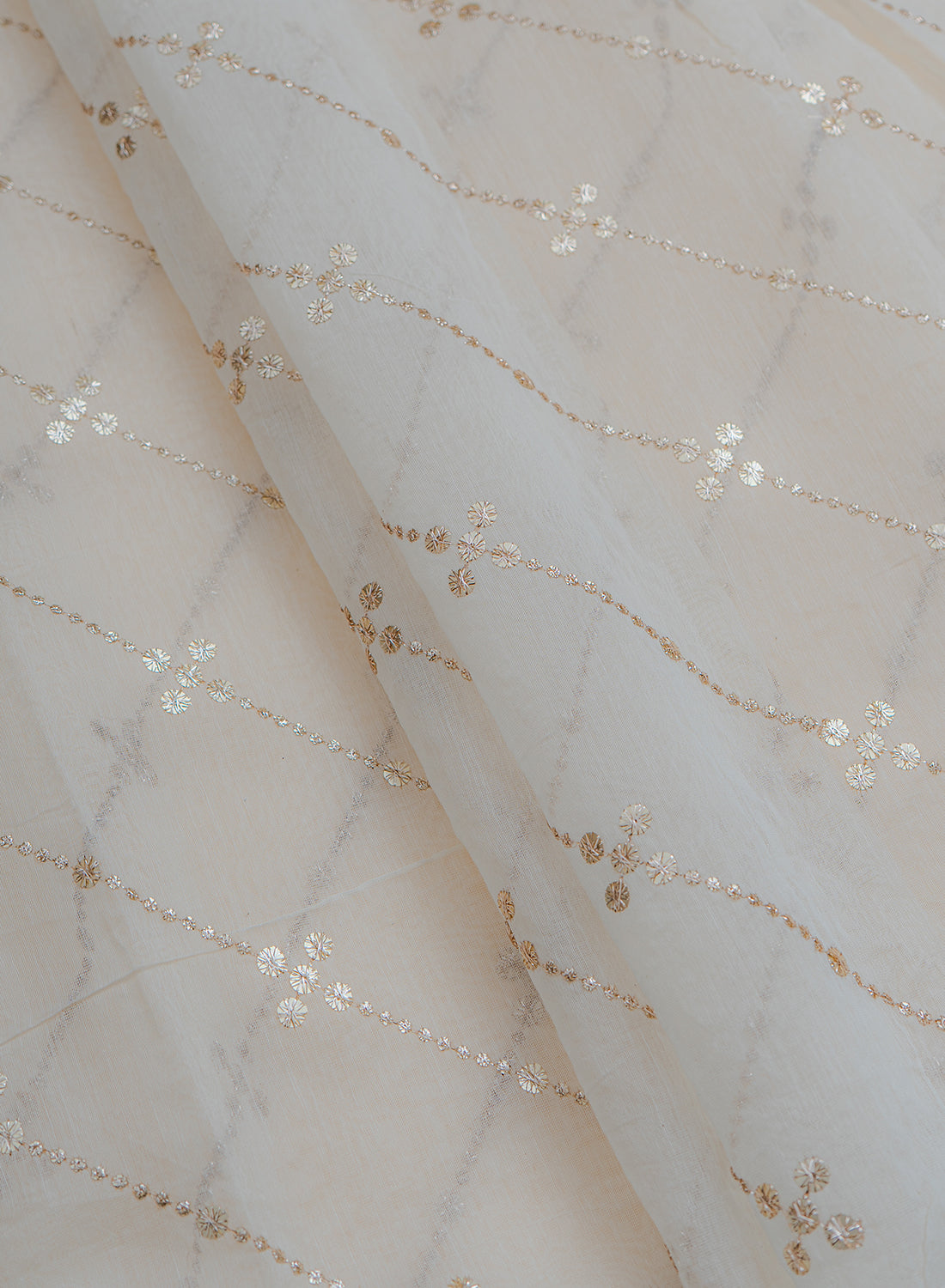 Mul Chanderi Dyeable Mukesh Work Embroidery Fabric.