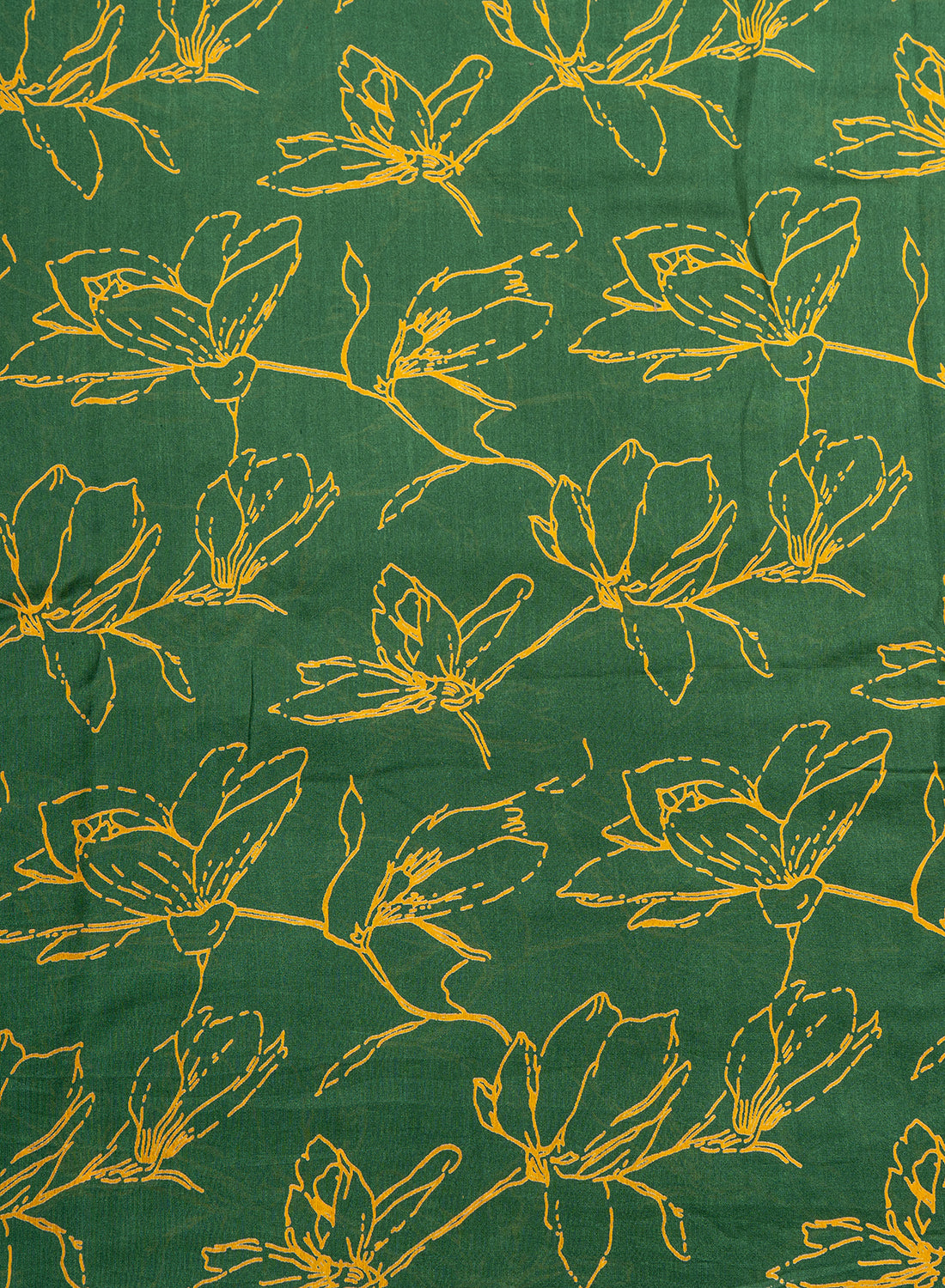 Organic Chanderi Dark Green Color Mix And Match Natural Print Fabric.