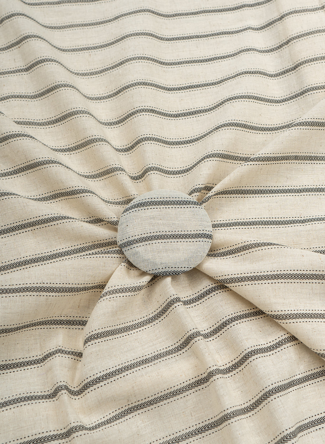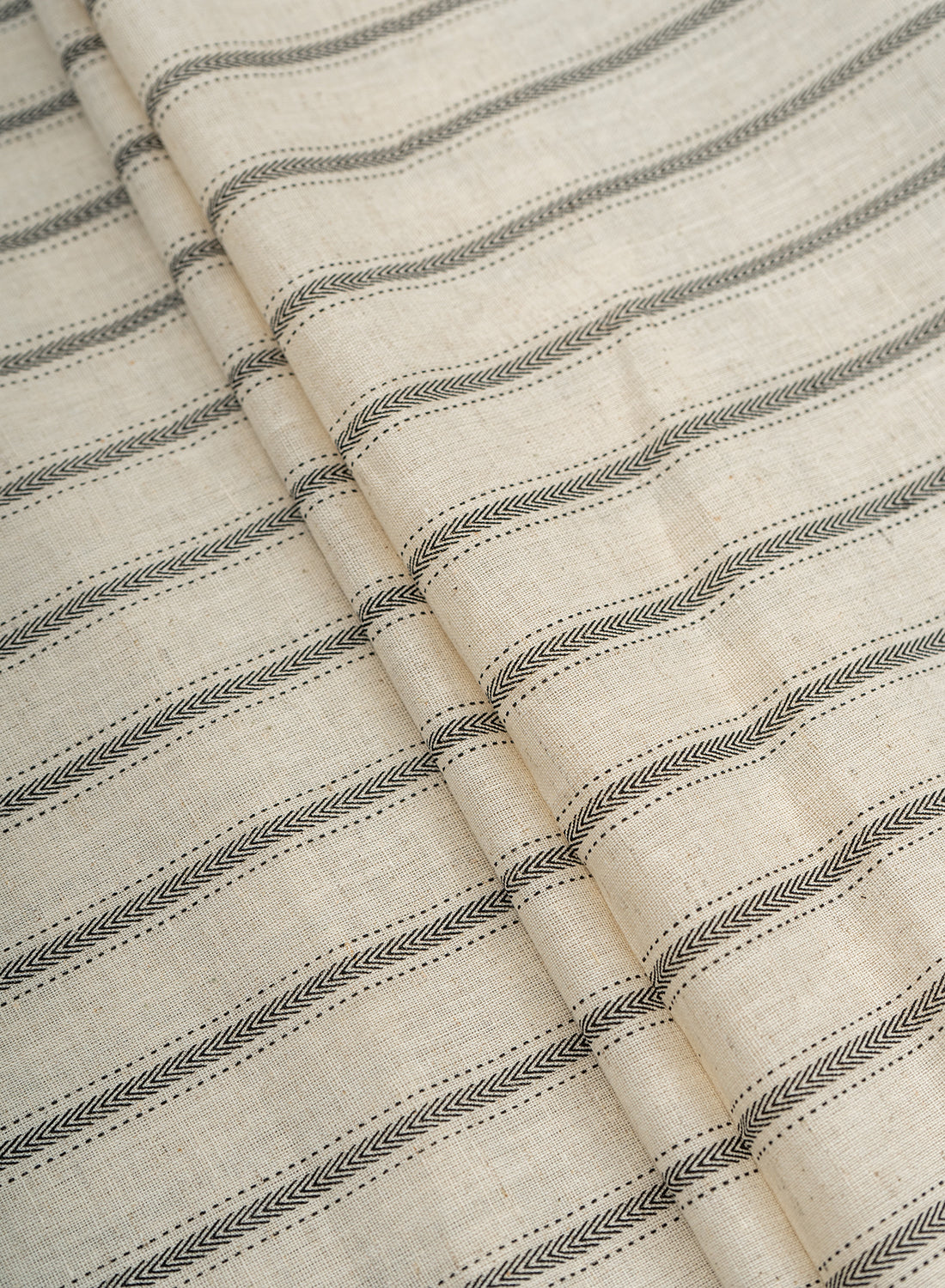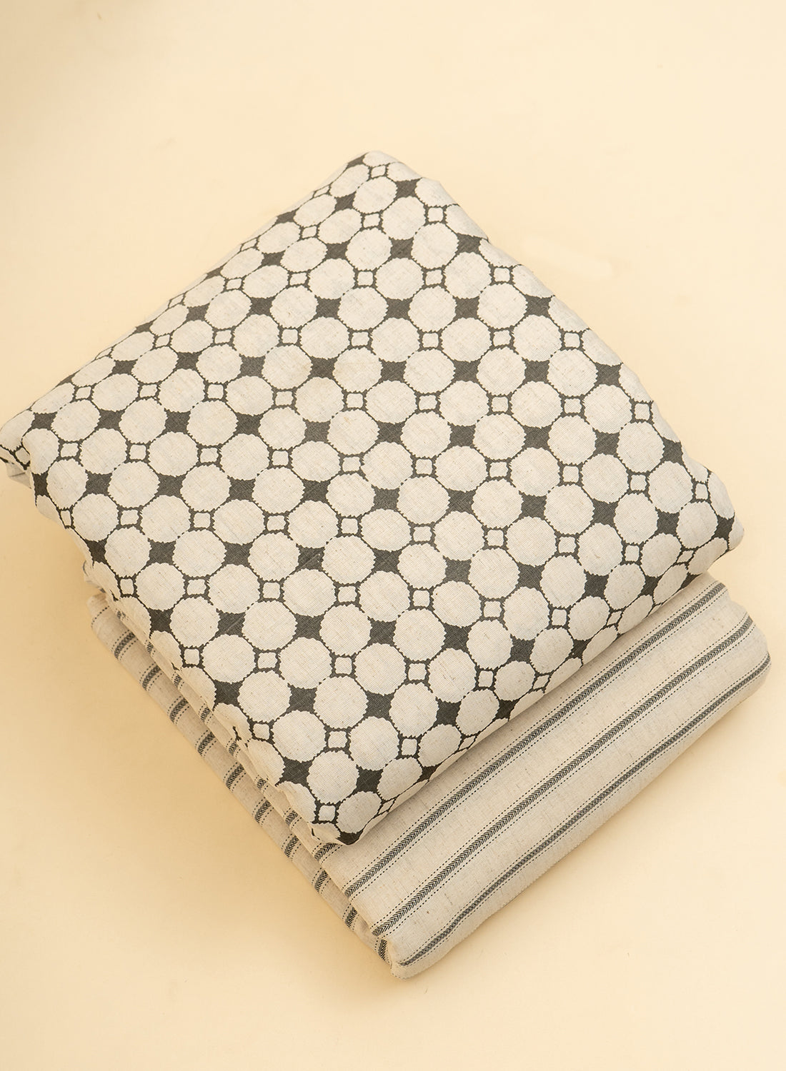 (Pre Cut-2 Meter) Cotton Flex Off-White Color With Grey Stripes Pattern Discharge Print Fabric