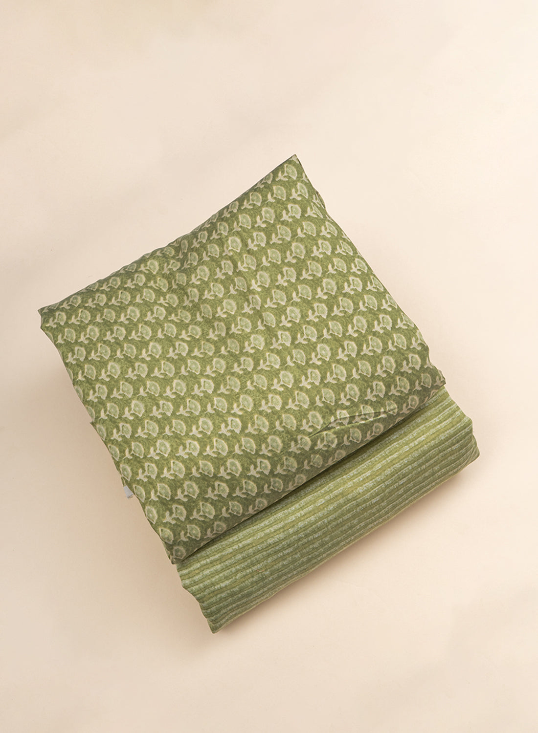 Pure Chanderi Pista Green Color Mix And Match Screen Print Fabric.