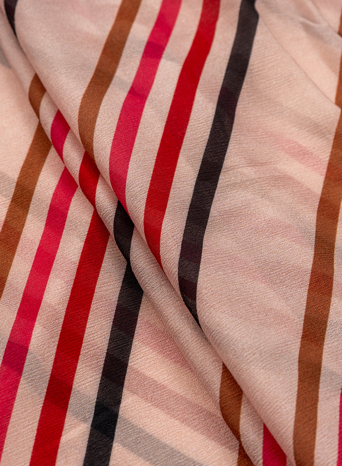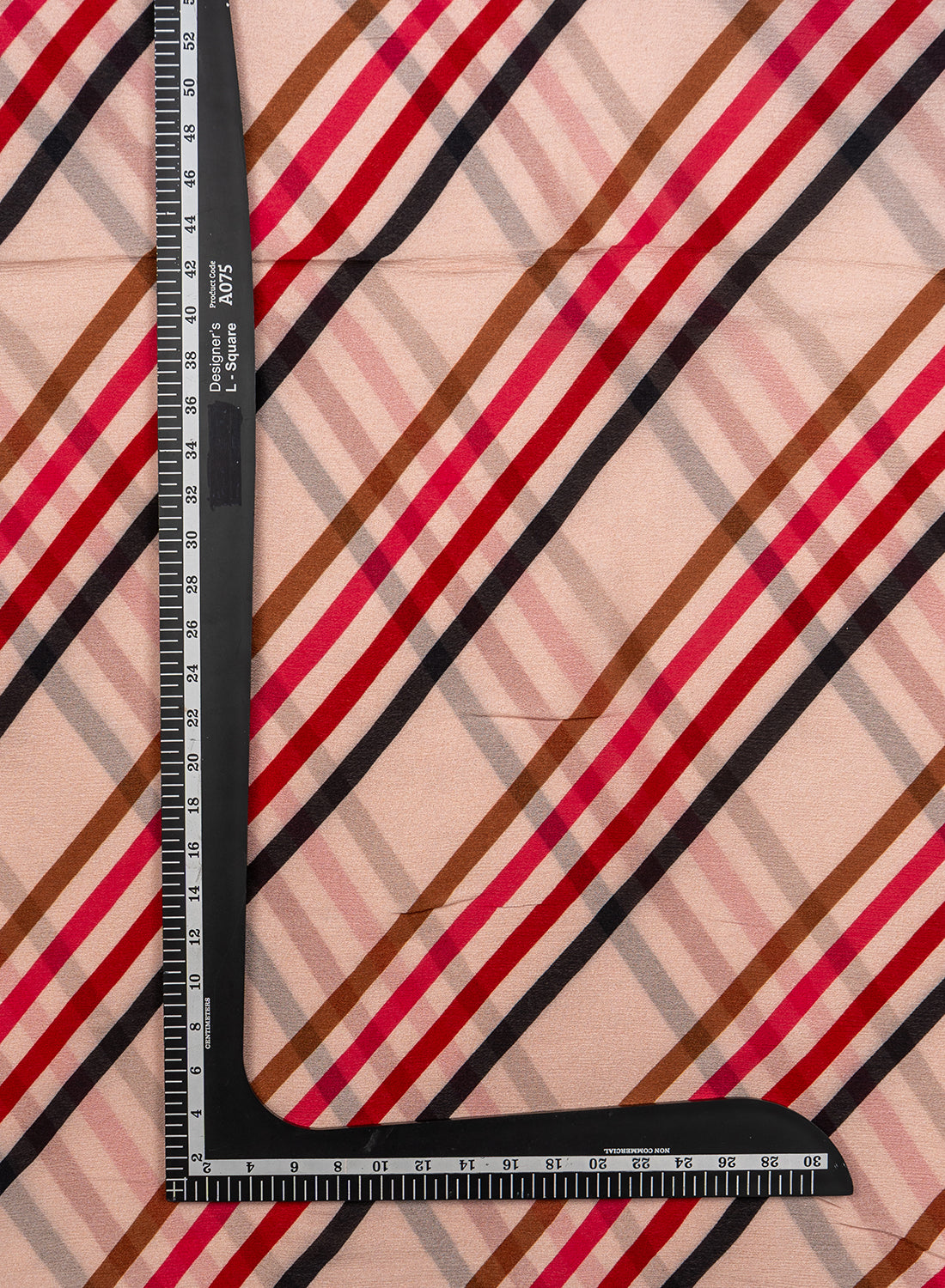 Pure Chinnon Chiffon Pastel Pink Color Cross Stripes Digital Print Fabric.