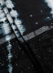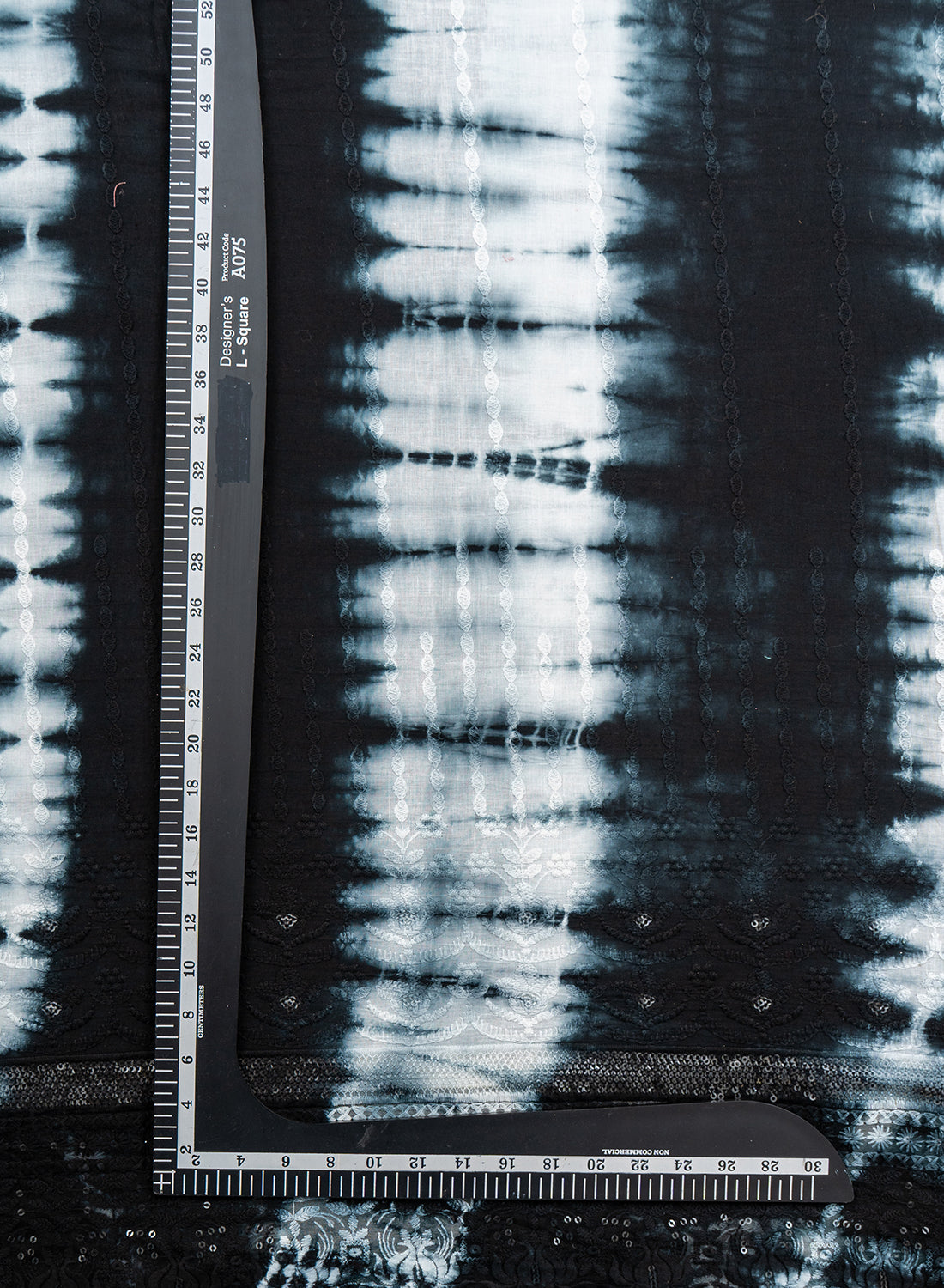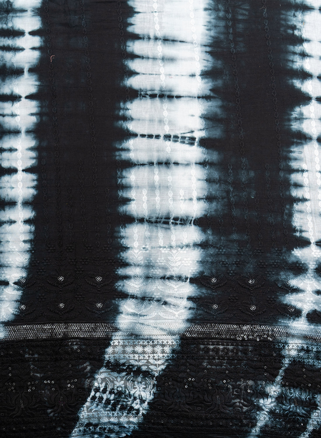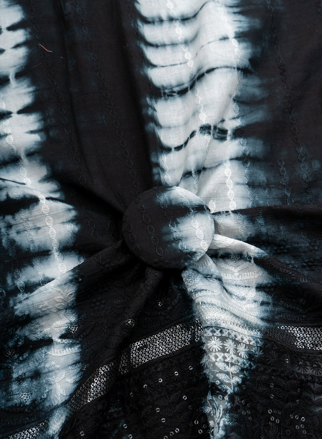 Pure Cotton Cambric Black Color Tie And Dye Daman Embroidery Fabric.