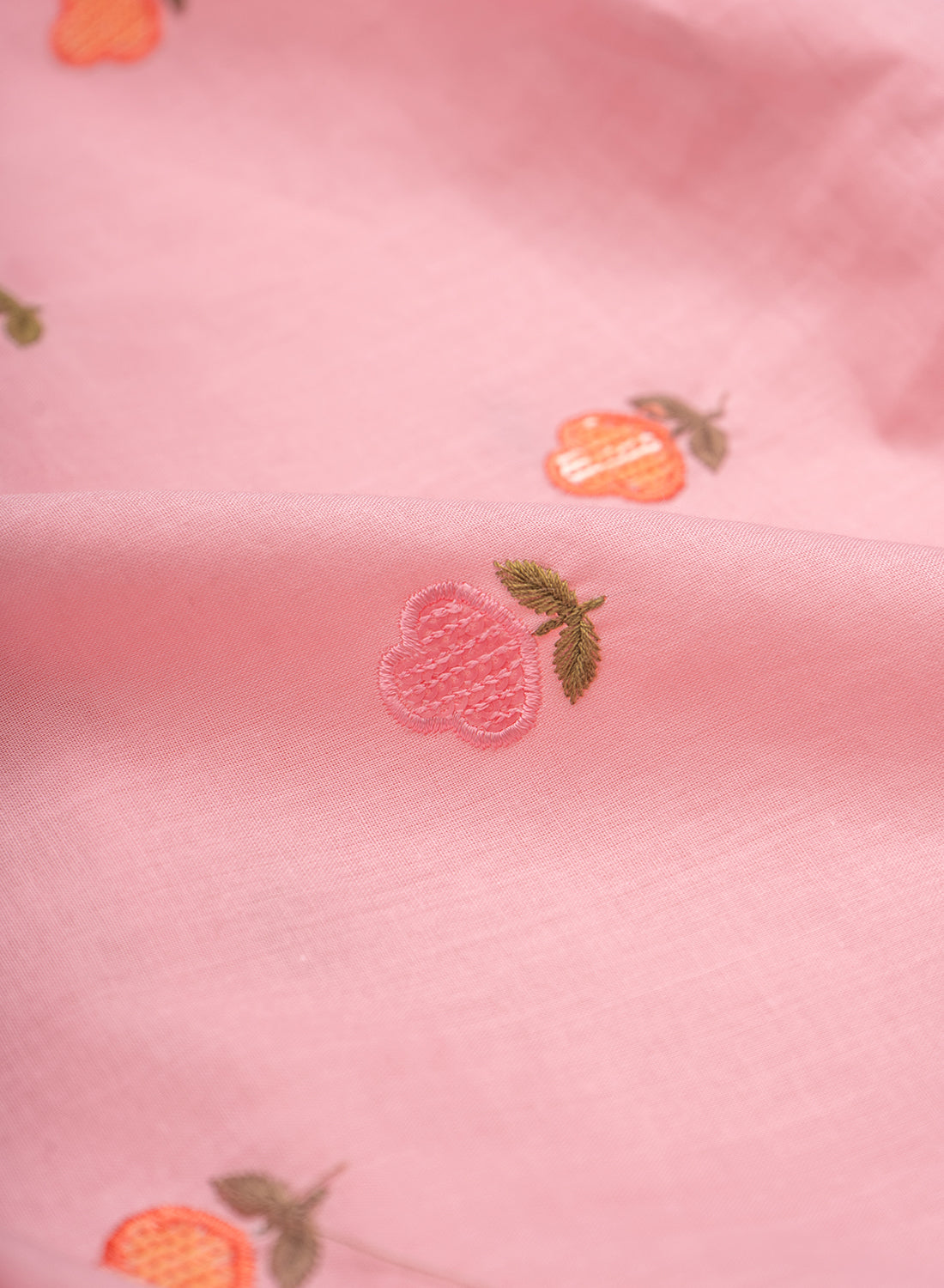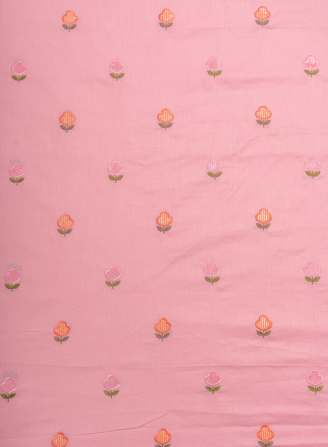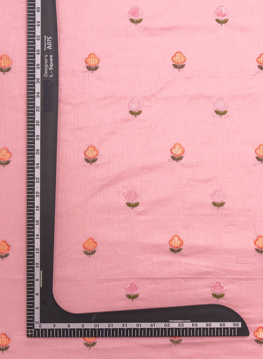 Pure Cotton Cambric Bright Pink Color Floral Pattern Resham Work Embroidery Fabric.