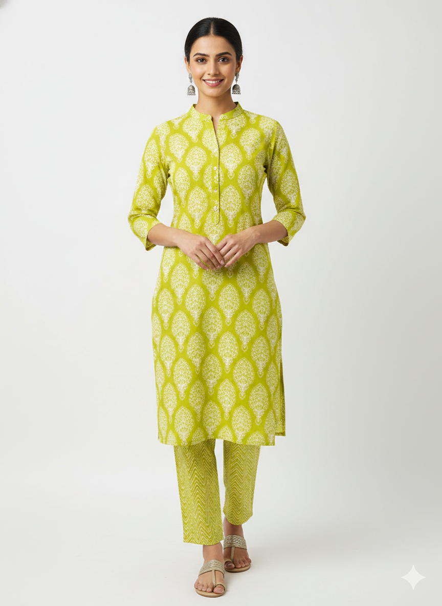 Pure Cotton Cambric Mix And Match Parrot Green Color Block Print Fabric.