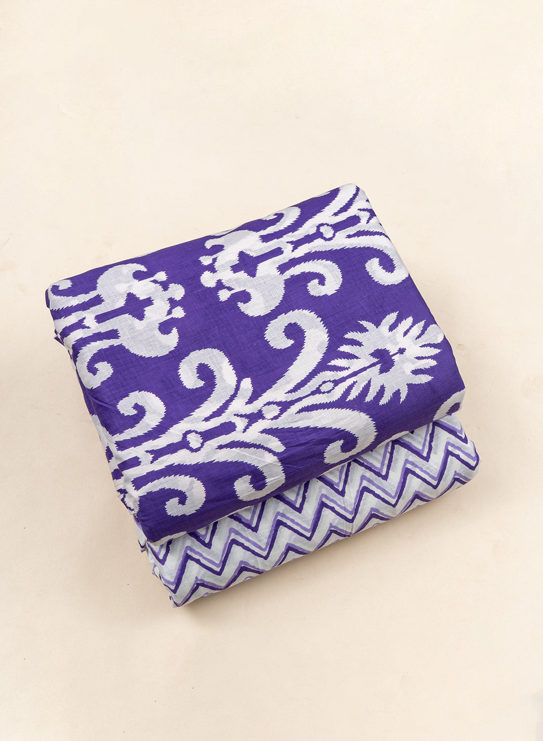Pure Cotton Cambric Mix And Match Purple Color Block Print Fabric.