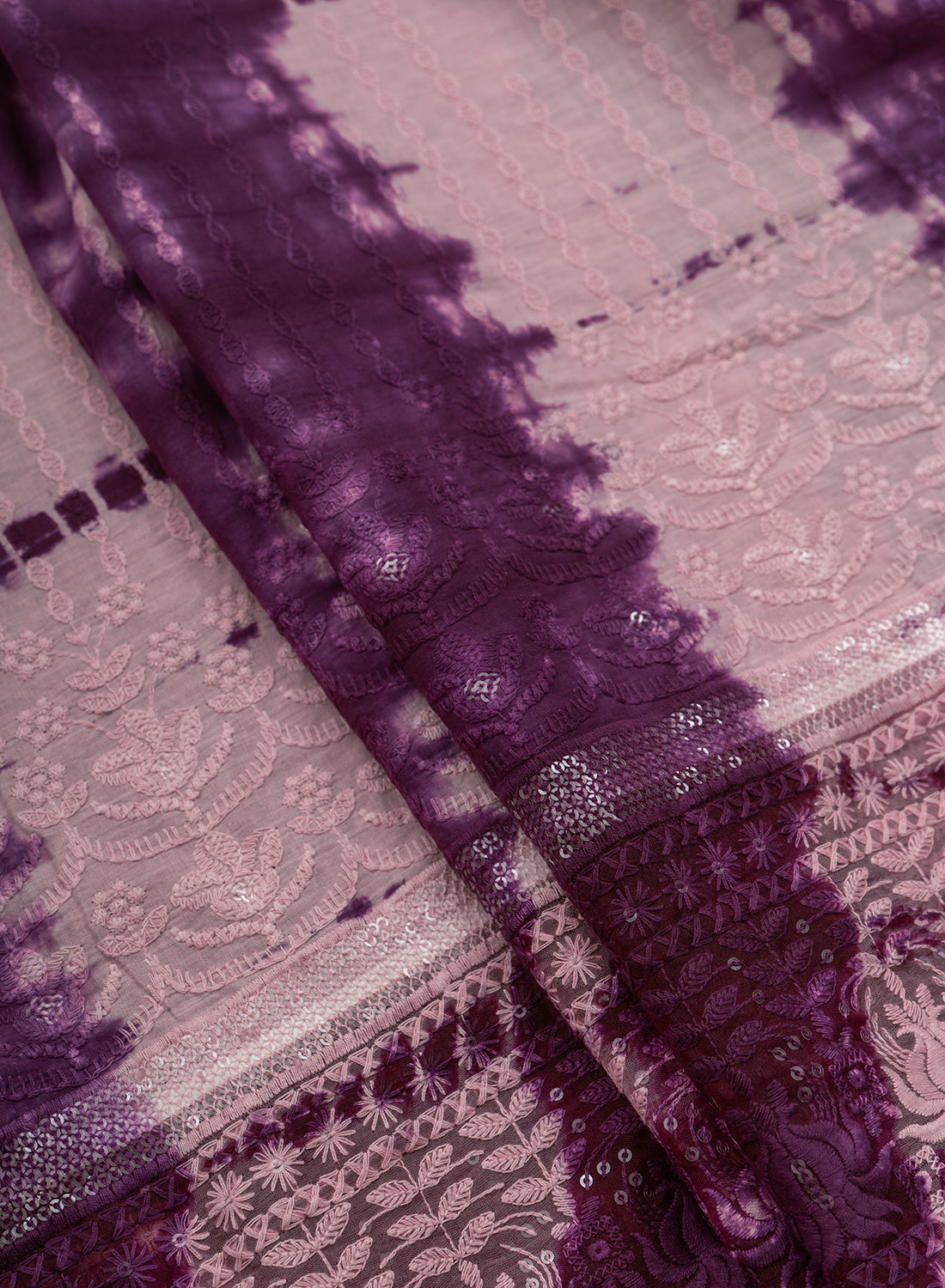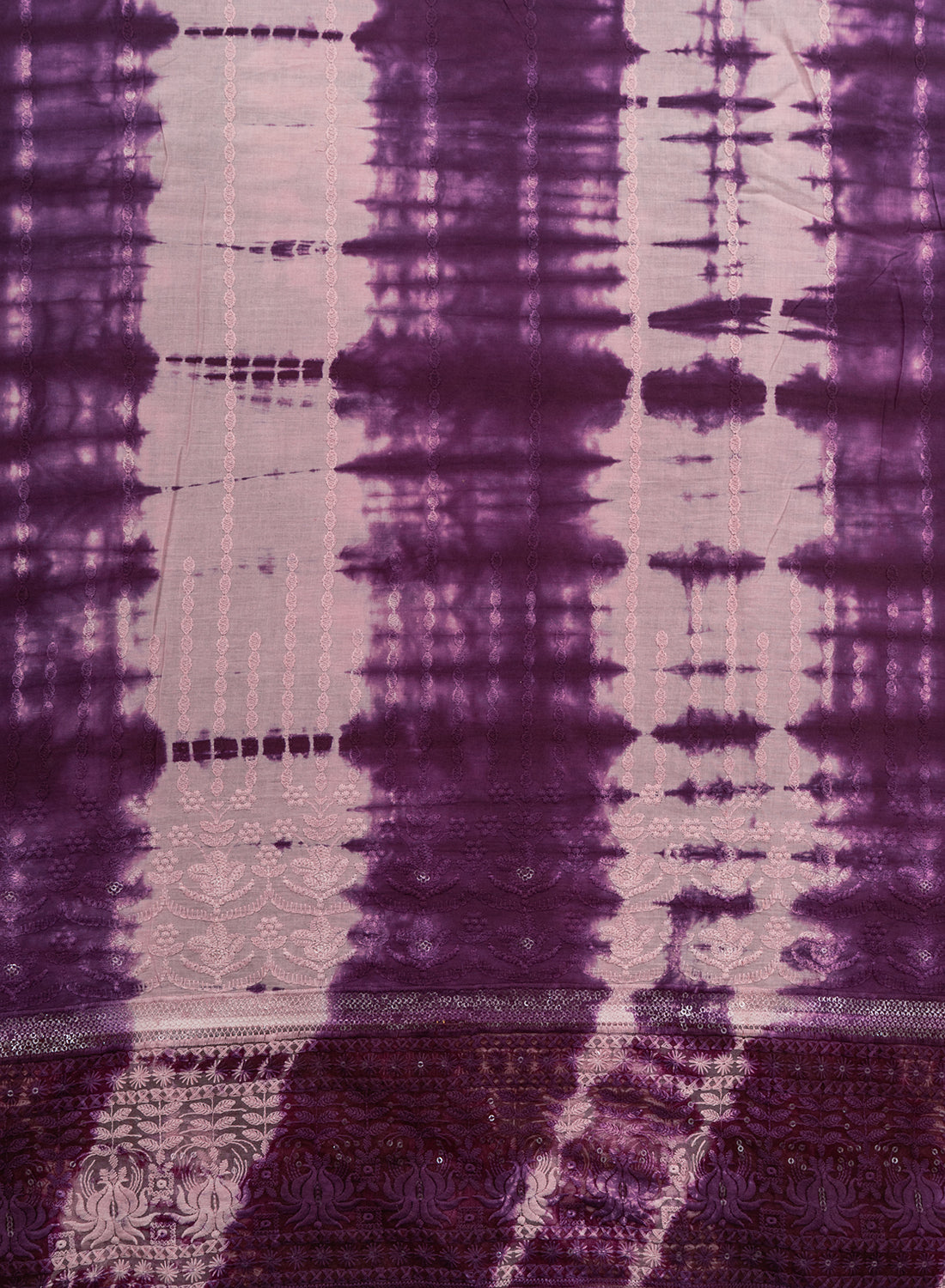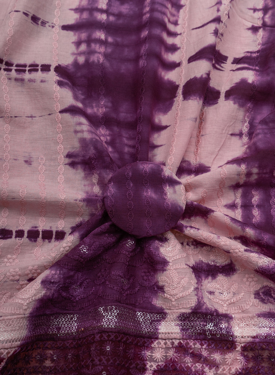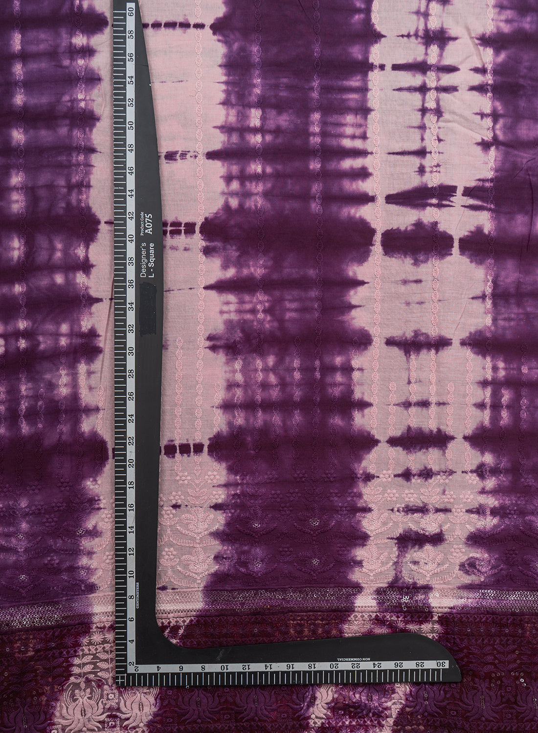 Pure Cotton Cambric Purple Color Tie And Dye Daman Embroidery Fabric.