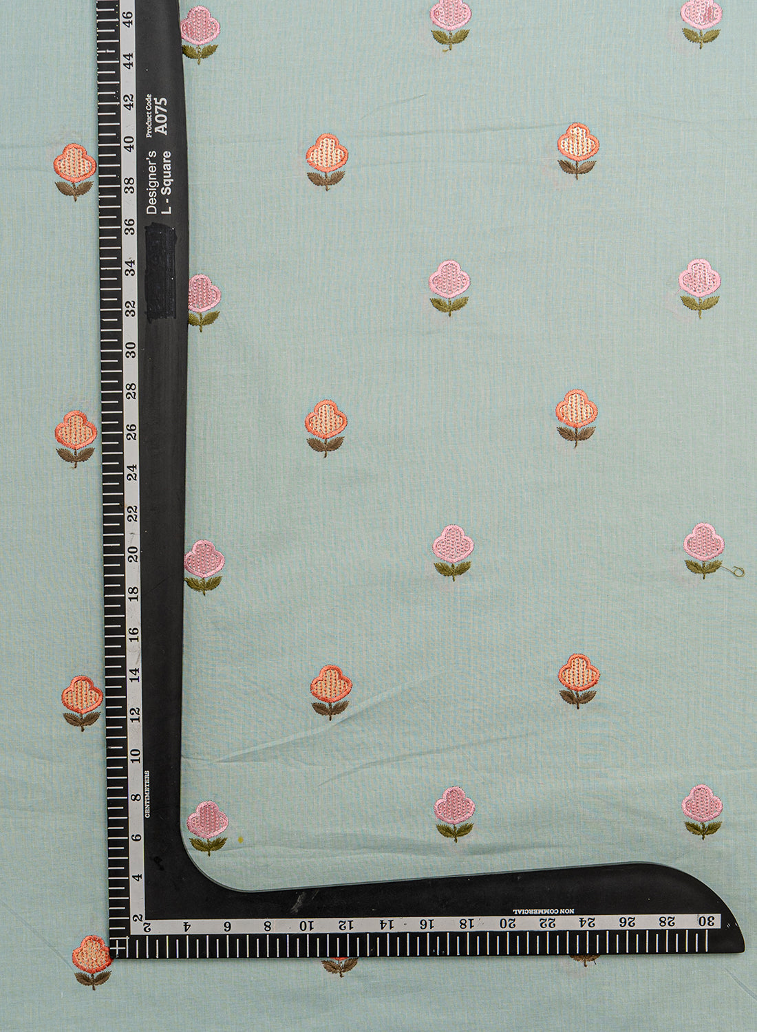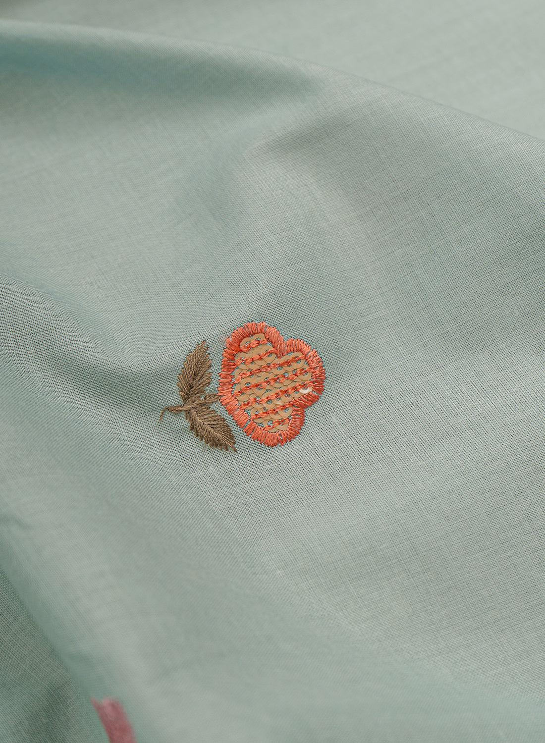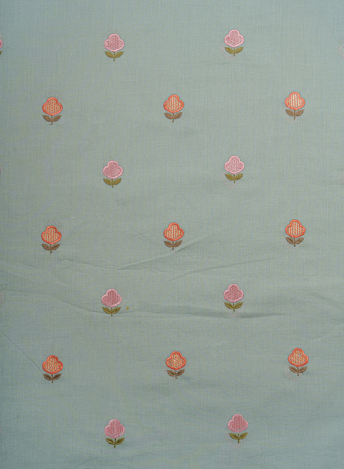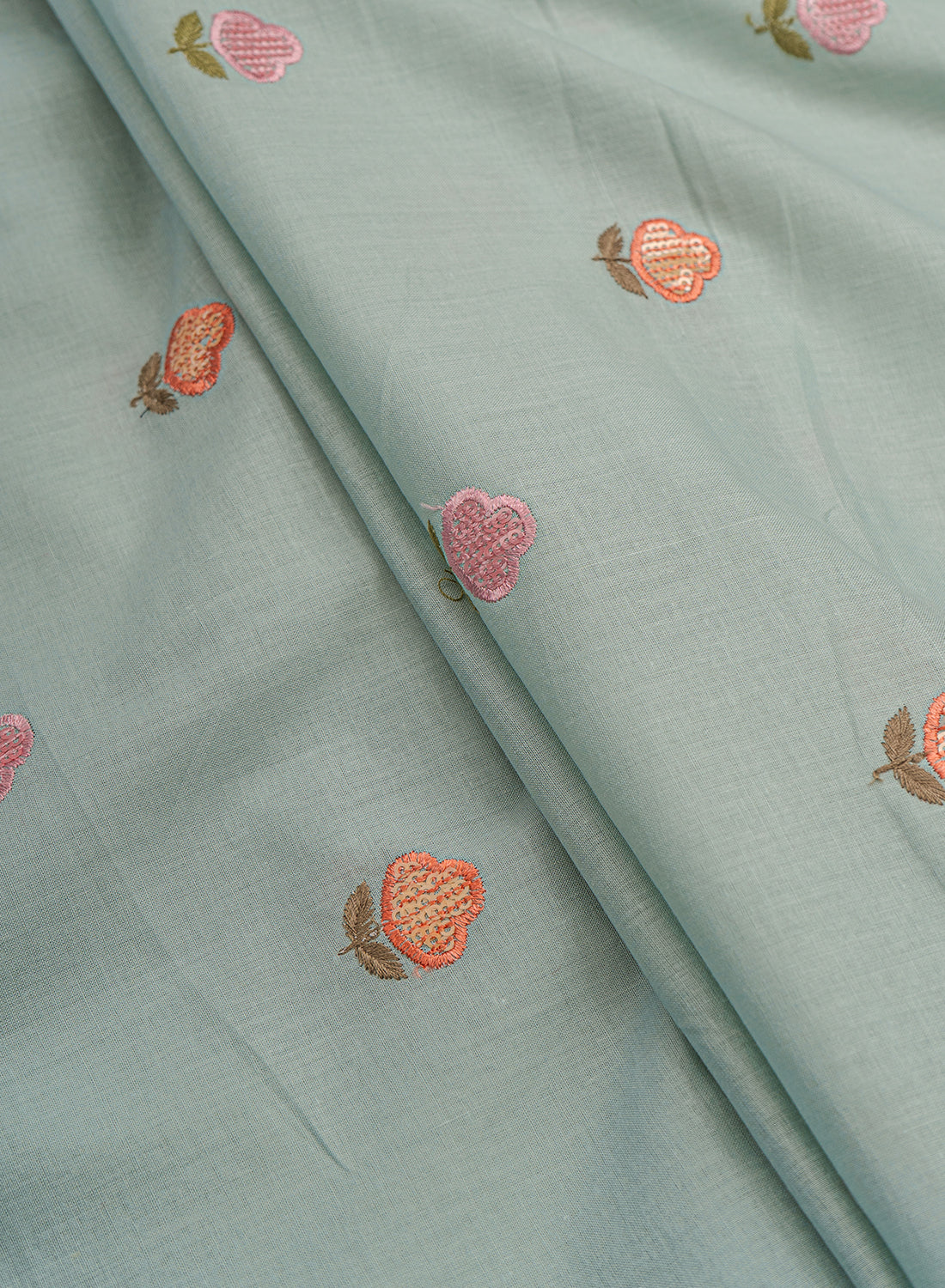 • Cotton fabric adorned with intricate embroidery.