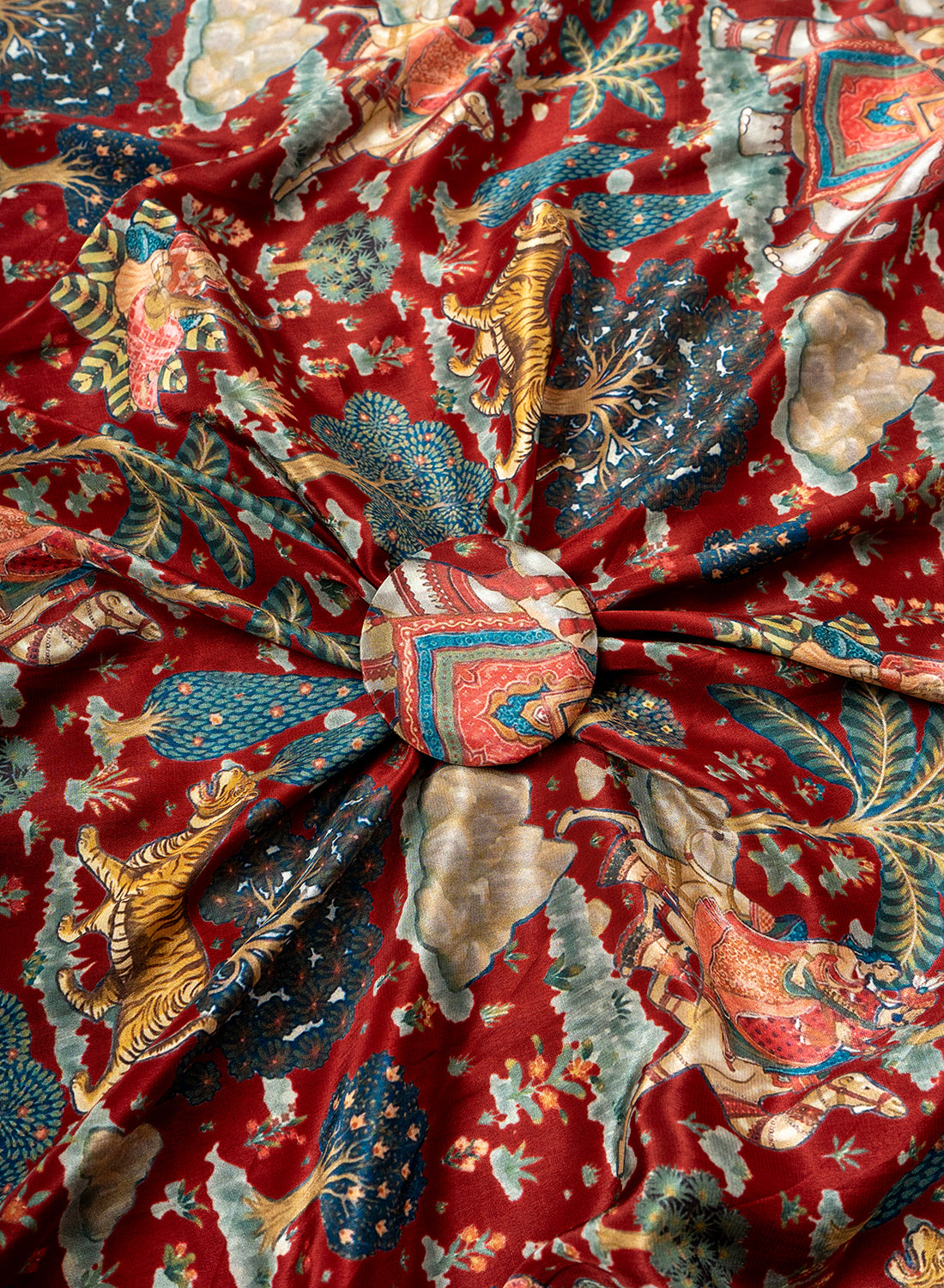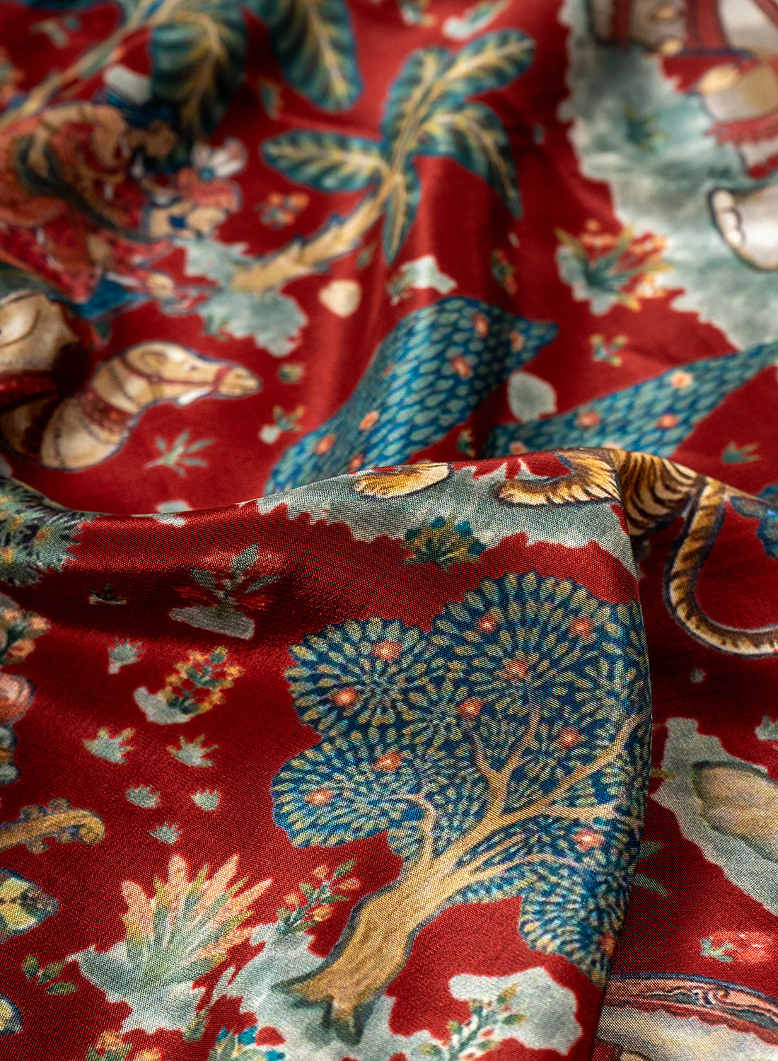 Pure Crepe Maroon Color Hybrid Animal Print Fabric.
