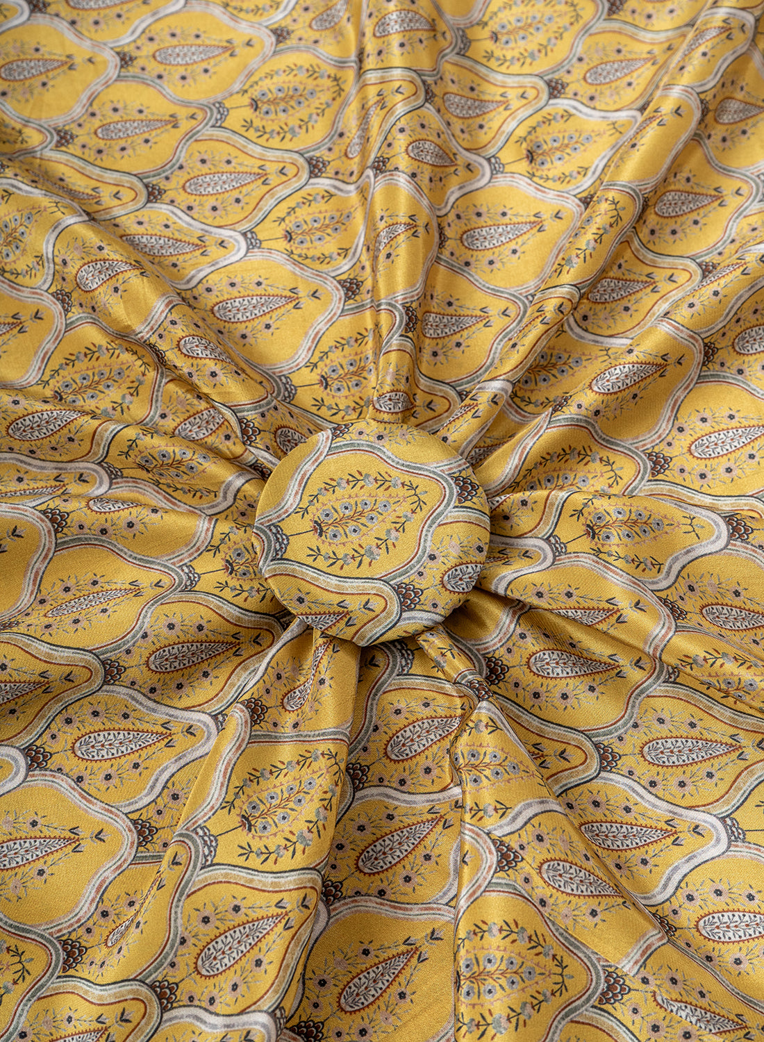 Pure Crepe Yellow Color Hybrid Floral Print Fabric.