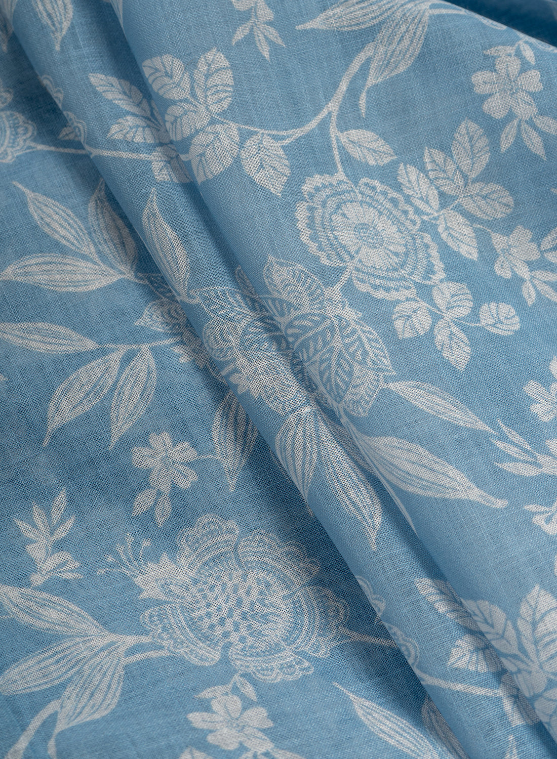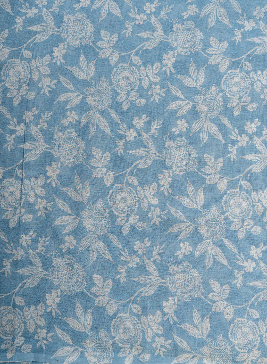 Art Linen Sky Blue Color Floral Digital Print Fabric.