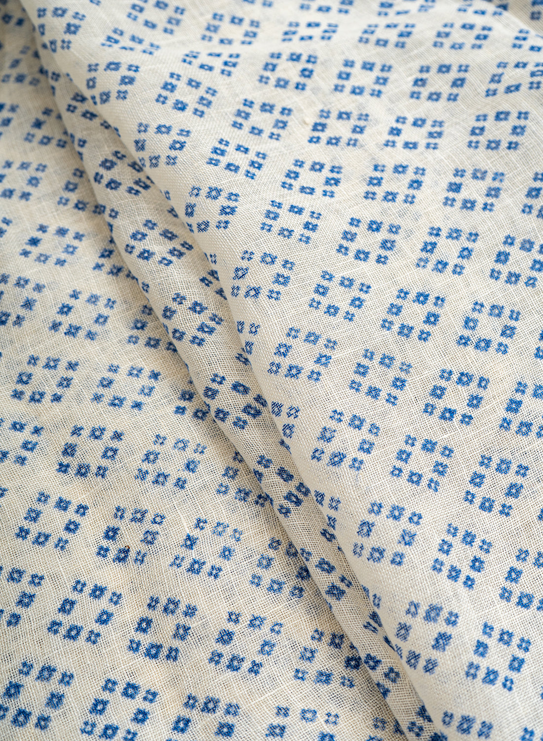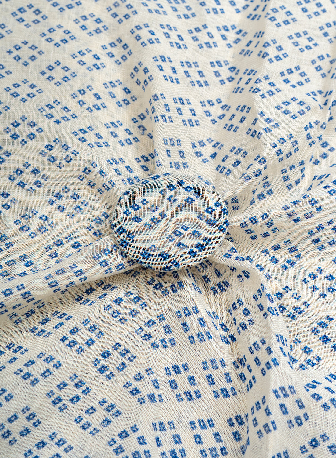 Pure Linen OffWhite Color Bandhani Natural Print Fabric.