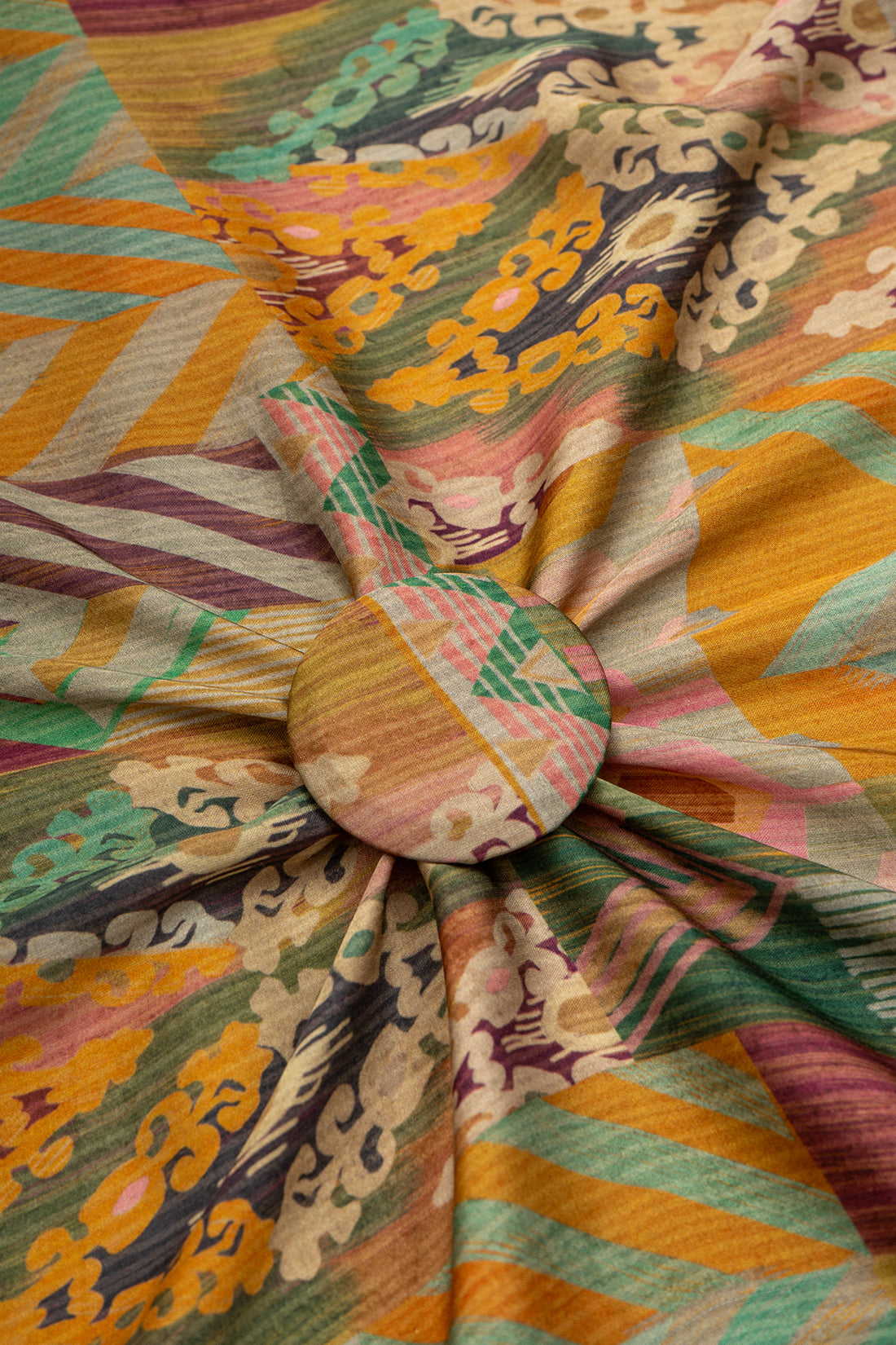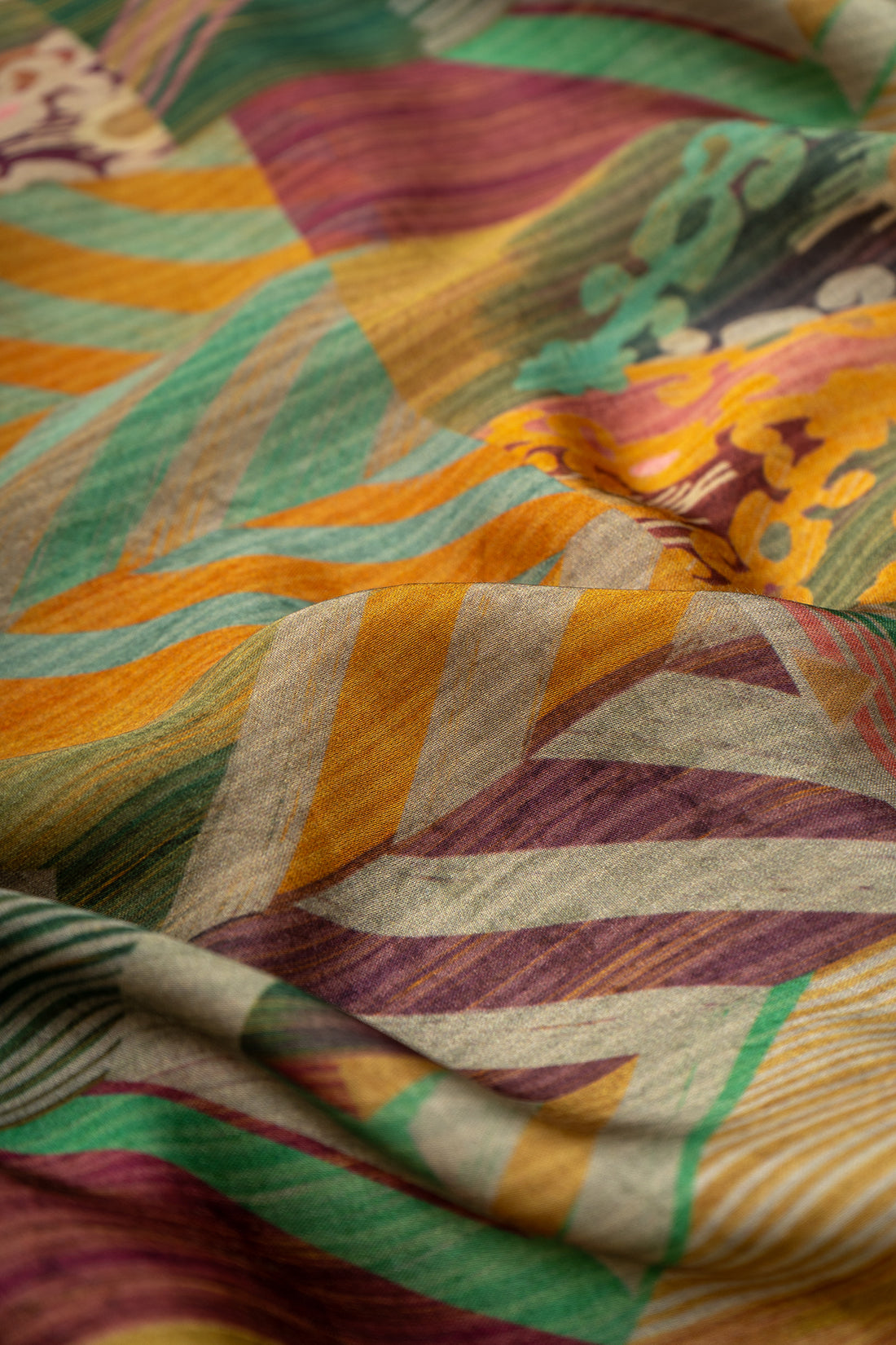 Pure Modal Satin banana Yellow Color Abstract Pattern Natural Print Fabric