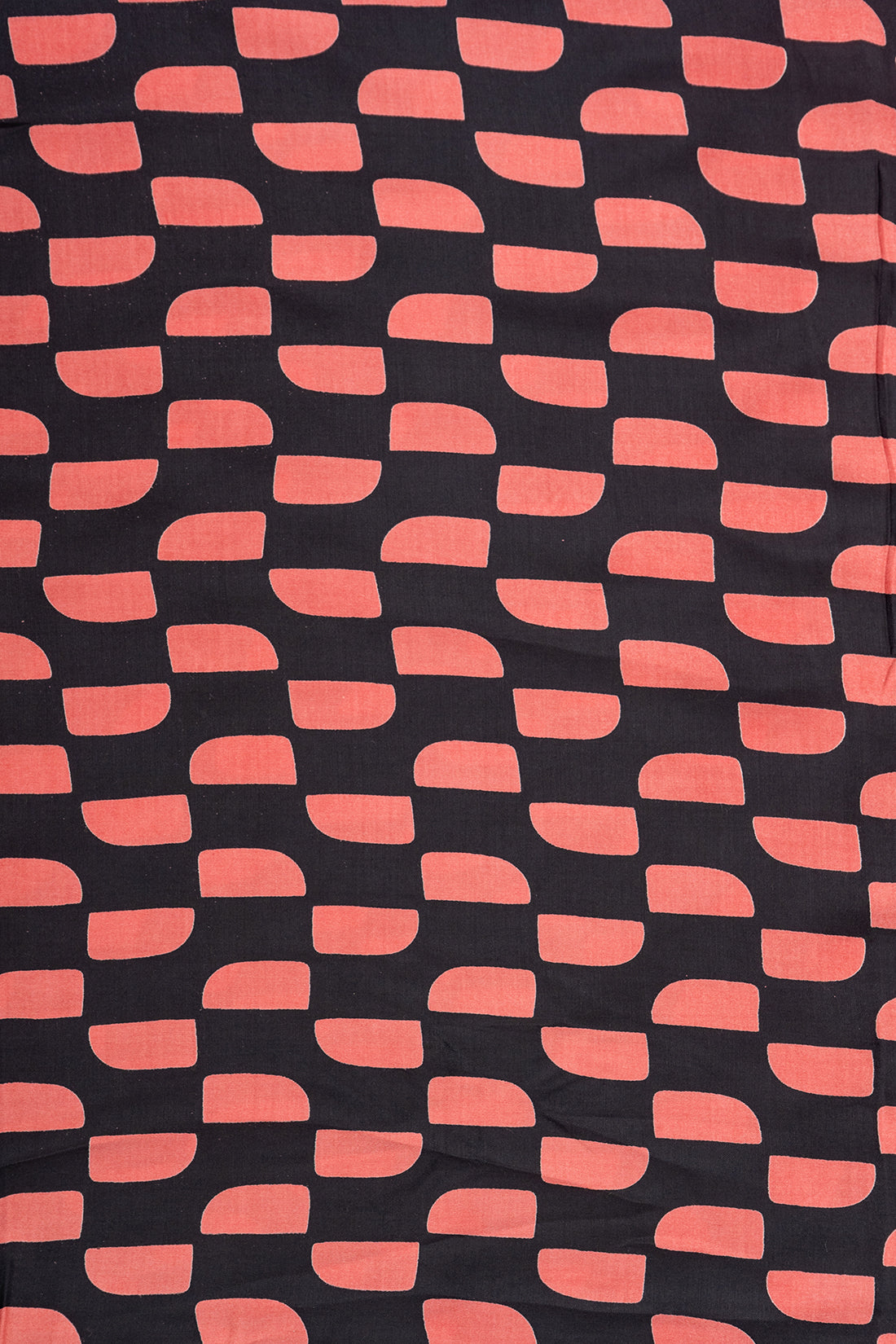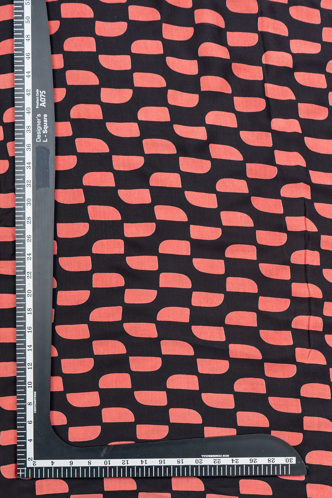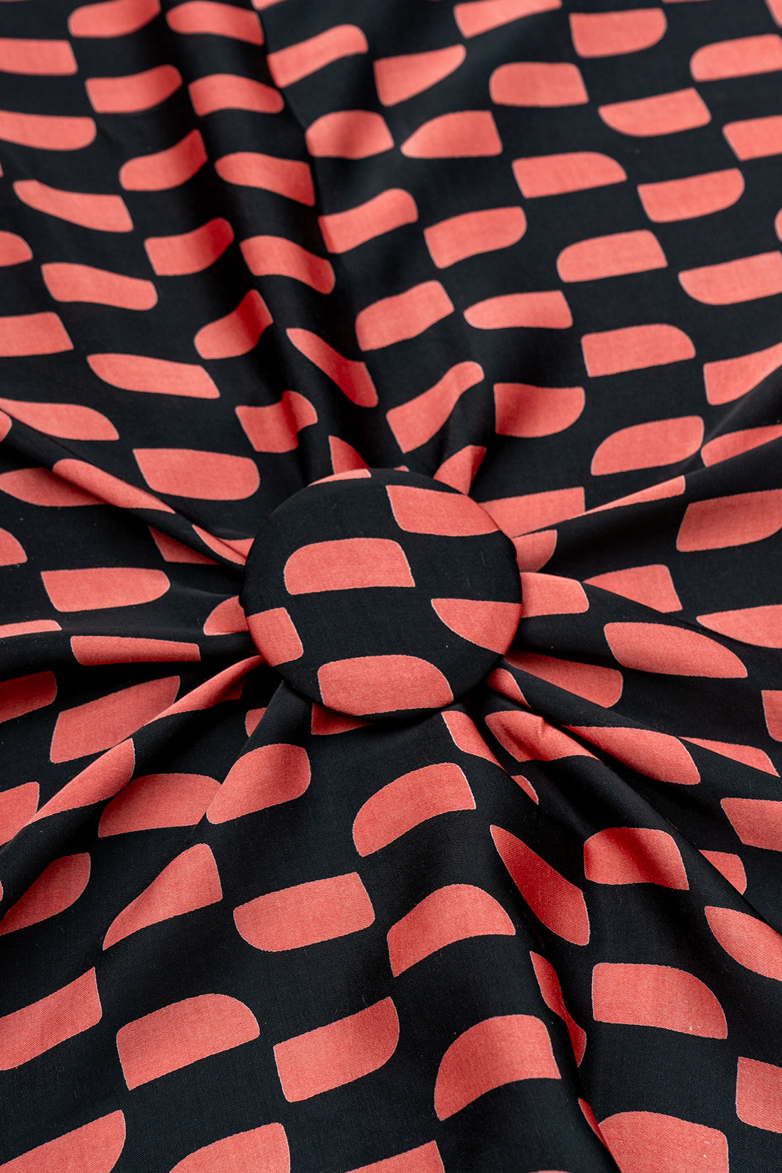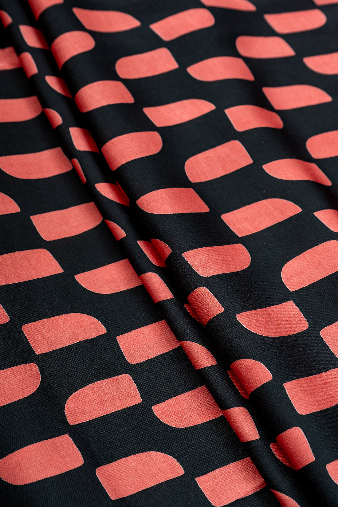 Pure Modal Satin Black Color Geometrical Pattern Natural Print Fabric.
