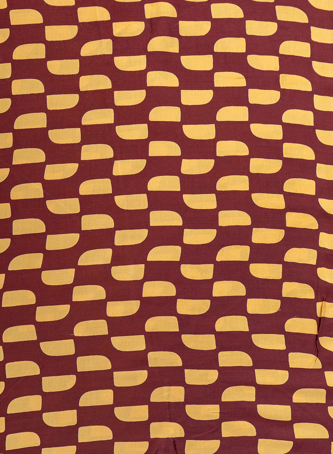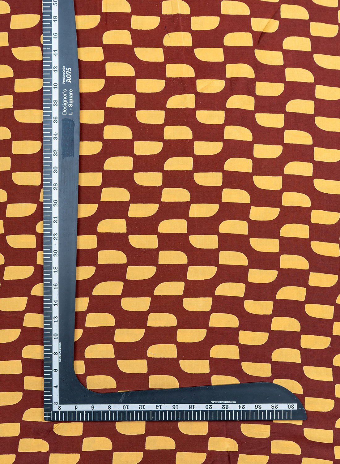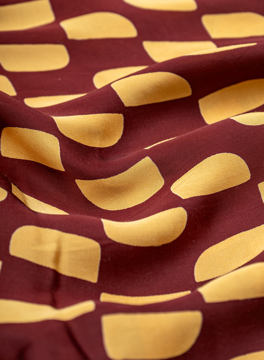Pure Modal Satin Brown And Yellow Color Geometrical Pattern Natural Print Fabric.