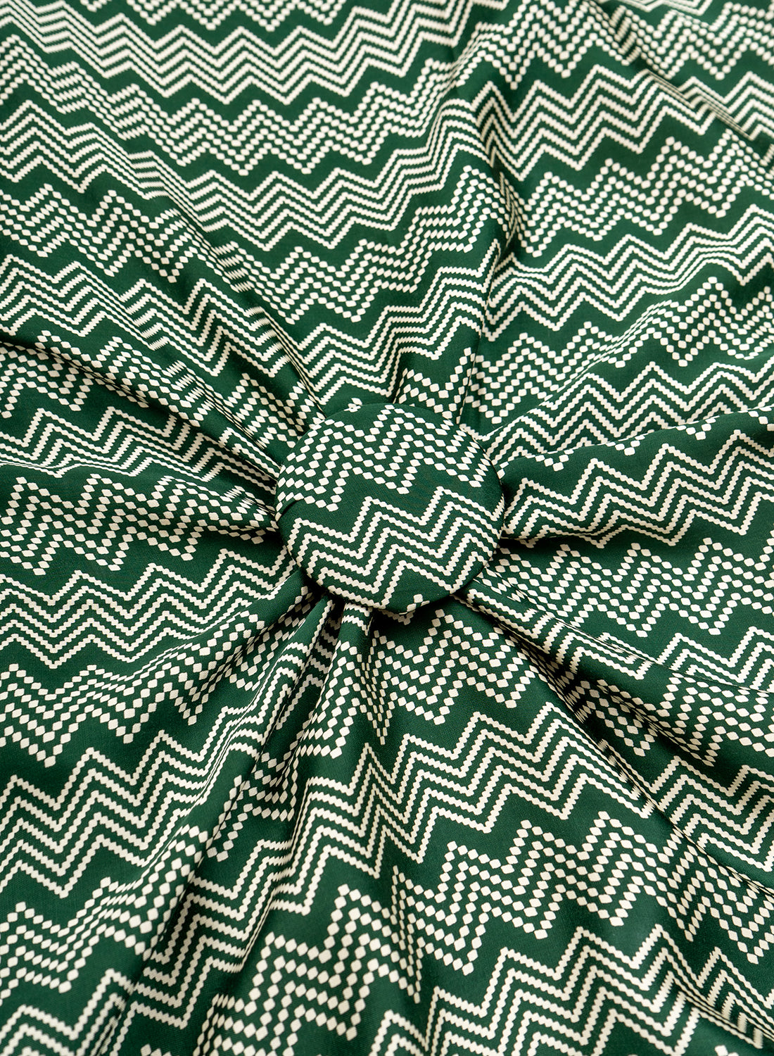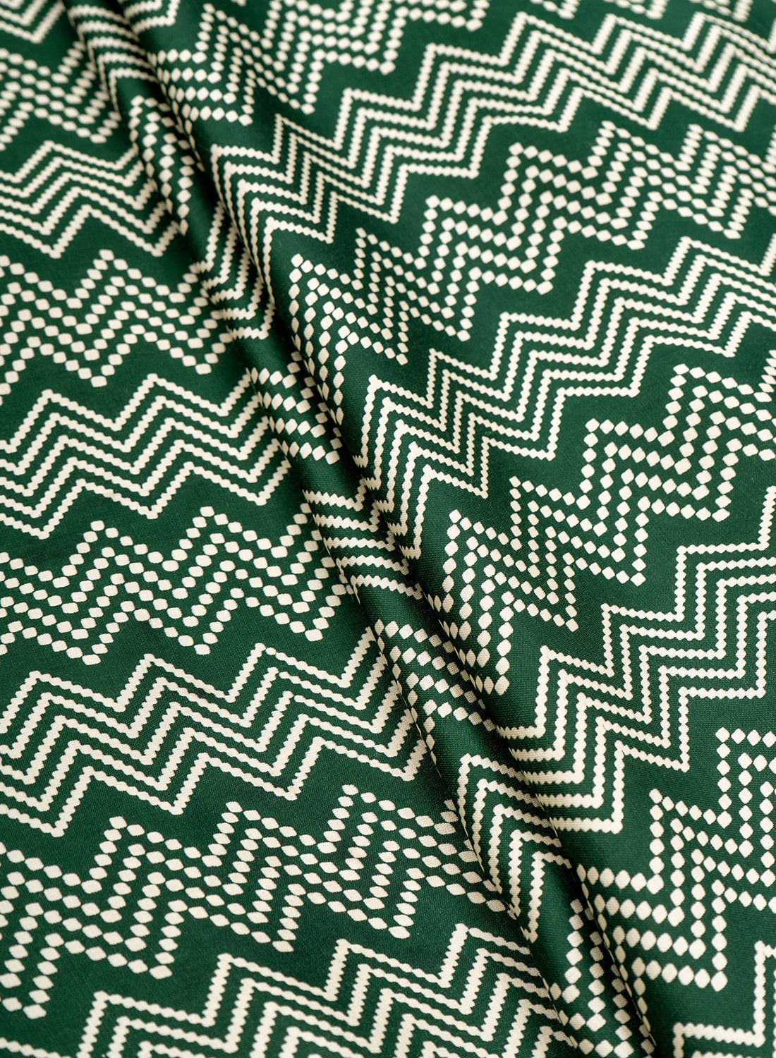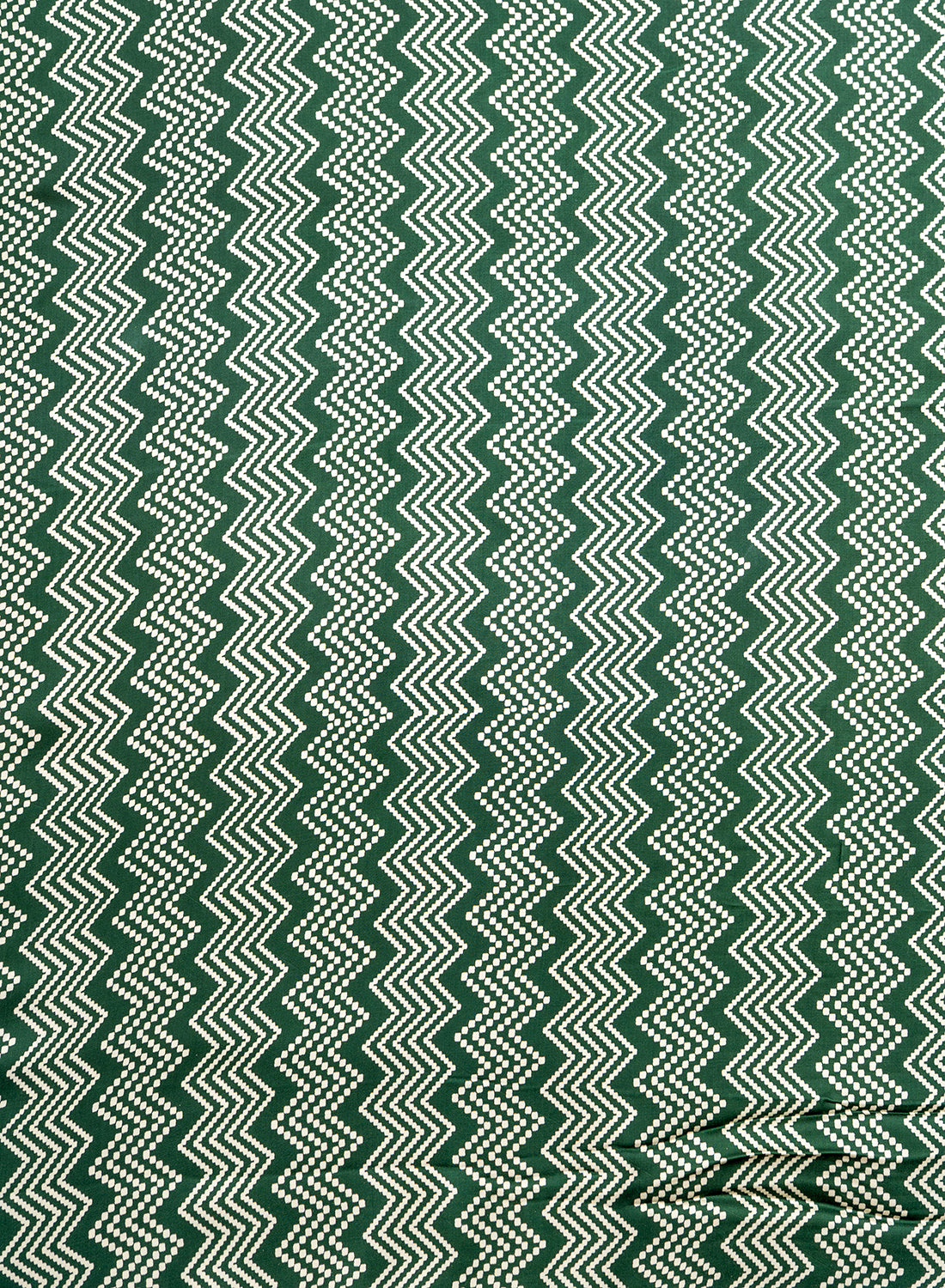 Pure Modal Satin Dark Green Color Zig-Zag Pattern Natural Print Fabric.