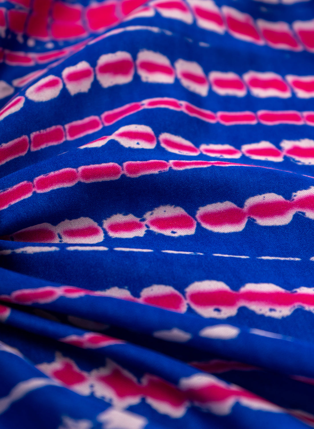 Pure Modal Satin Navy Blue Color Shibori Pattern Digital Print Fabric.