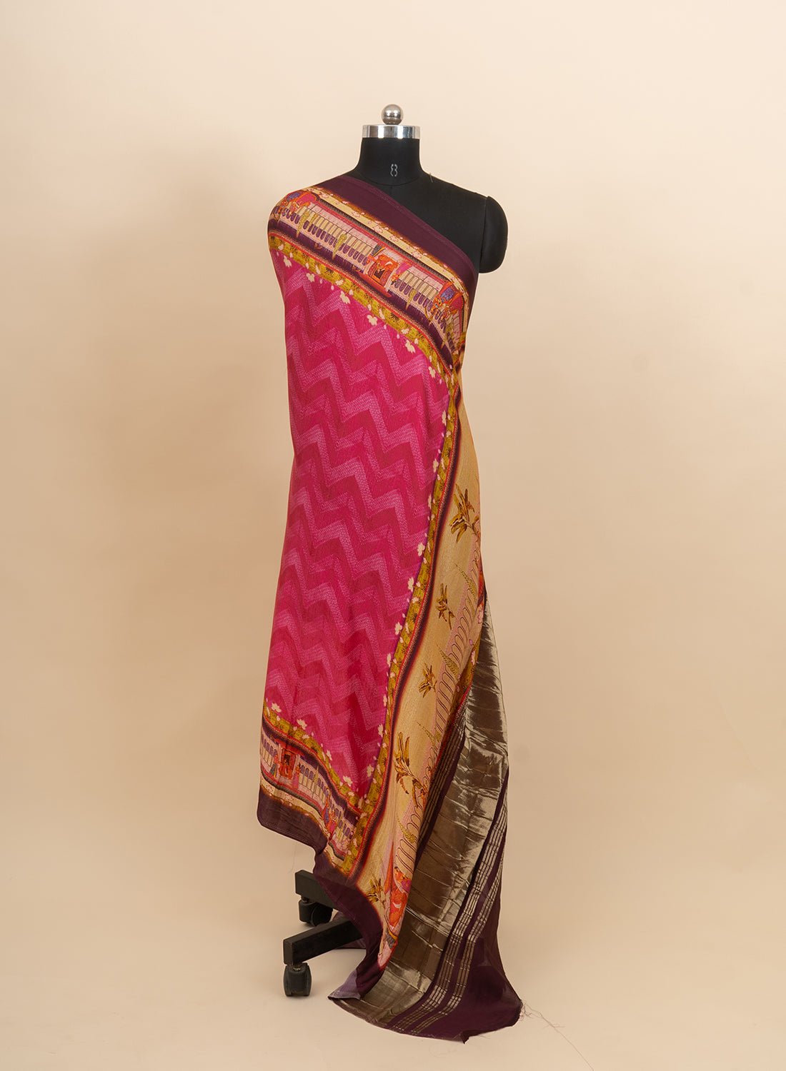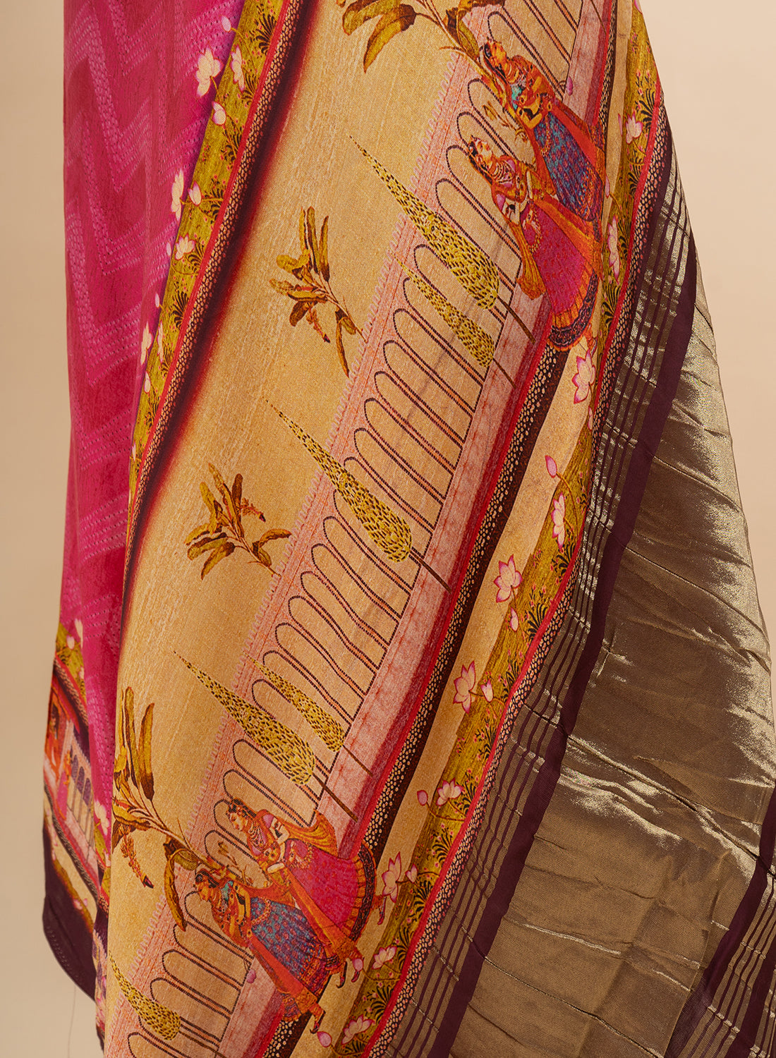 Pure Modal Satin Pink Color Zig-Zag Digital Print With Lagdi Patta Dupatta 42-Inches