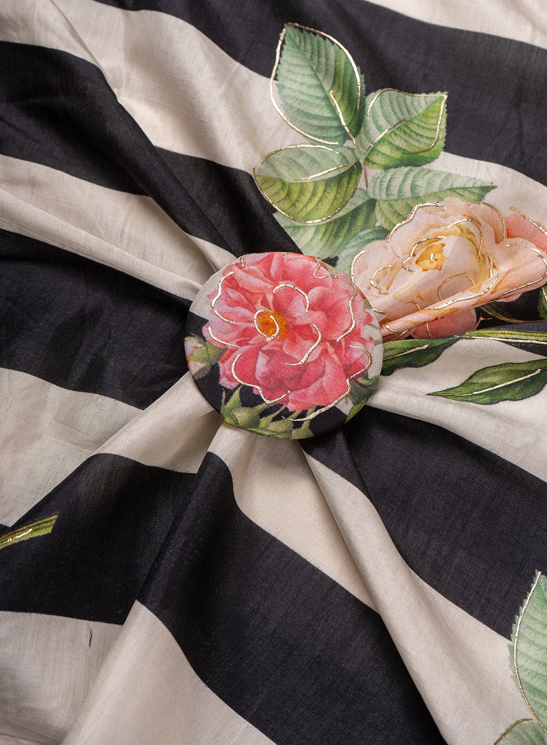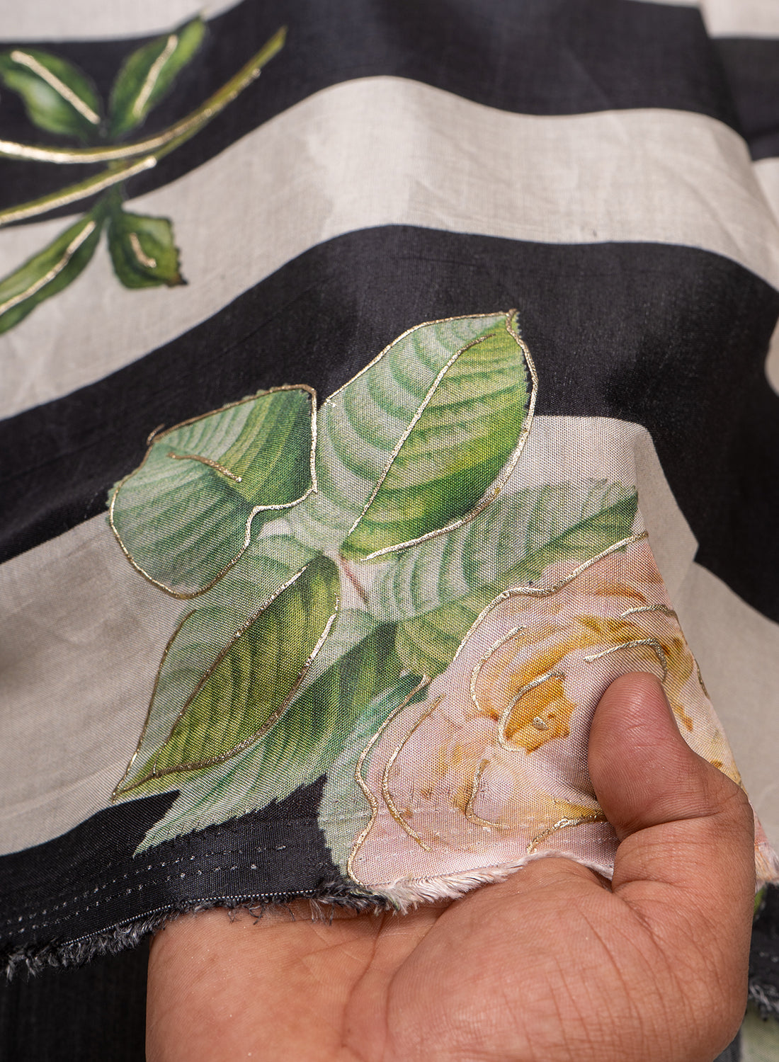 • Gold outline added on the design enhances the beauty of the fabric.
