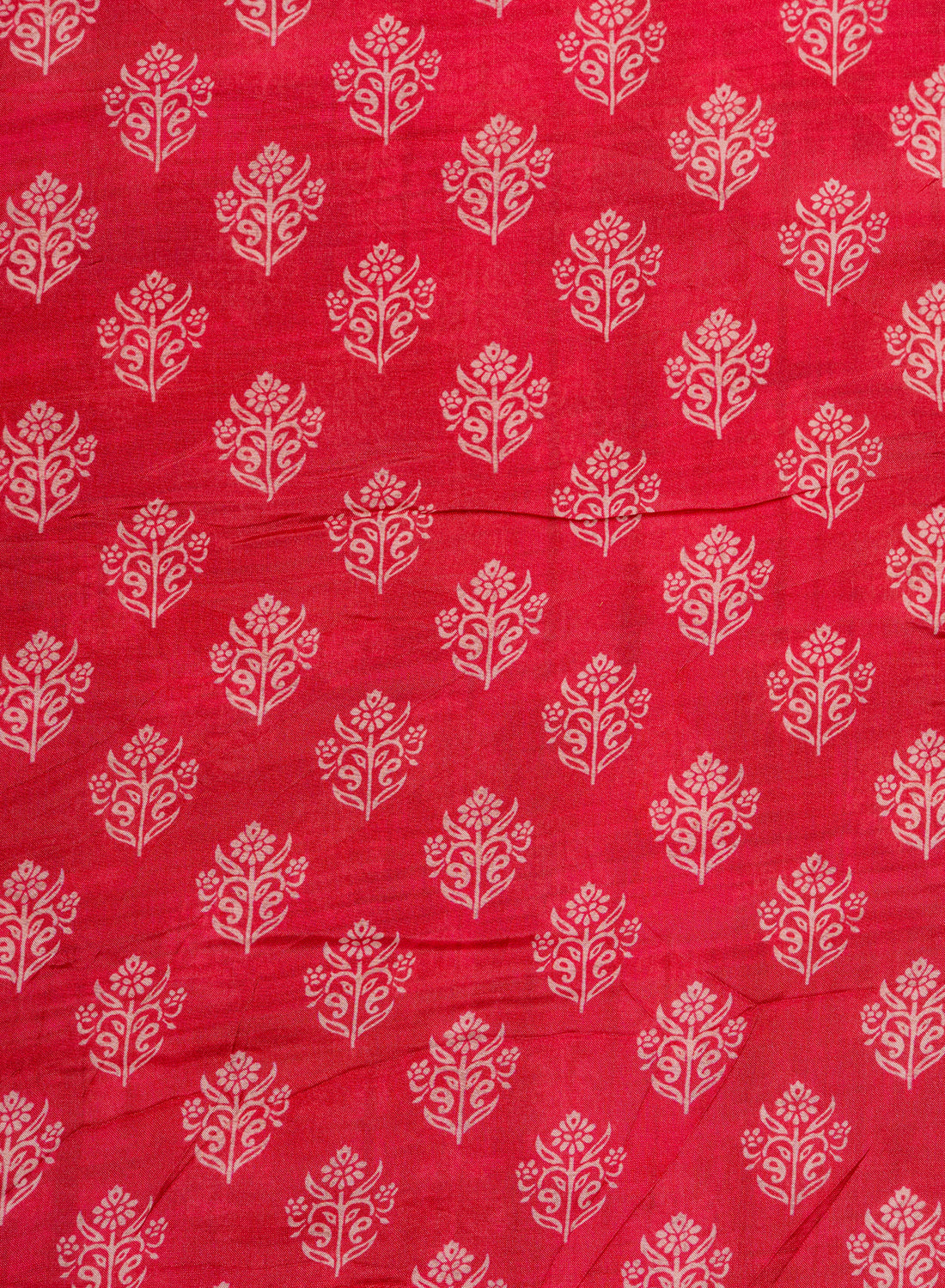 Pure Muslin Magenta Color Floral Pattern Digital Print Fabric.