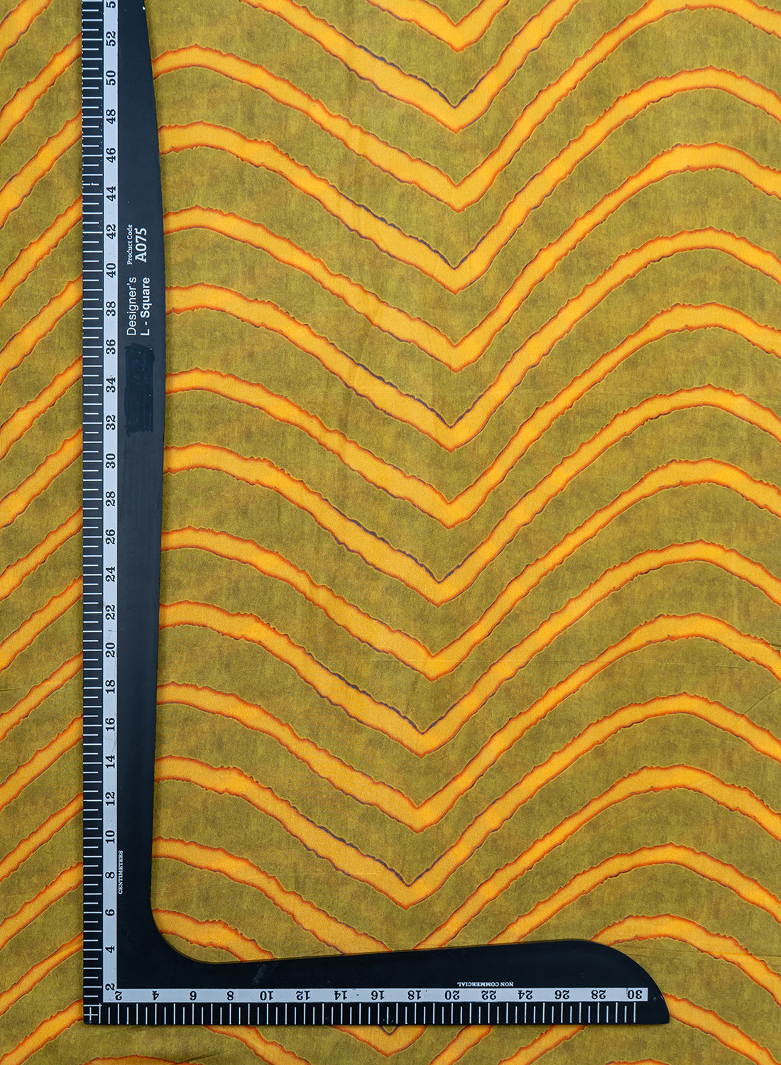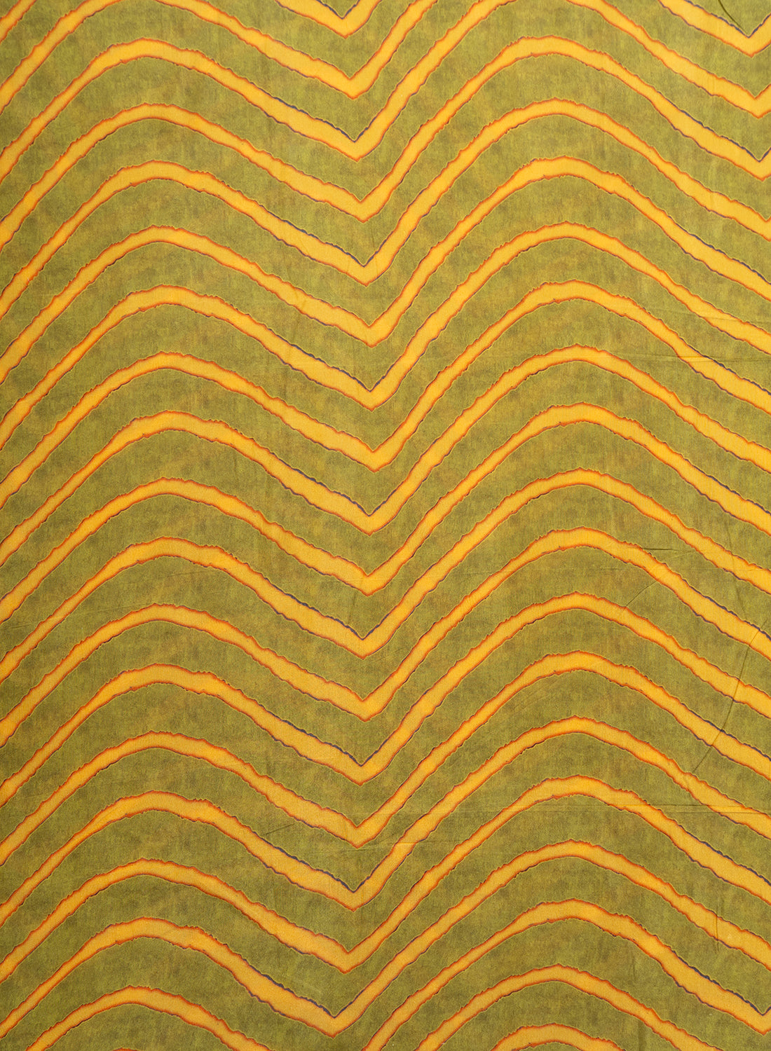 Pure Muslin Olive Green Color Lehariya Pattern Digital Print Fabric.