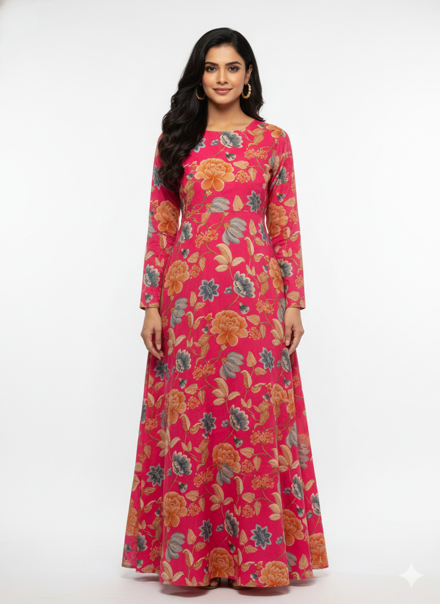 Pure Muslin Pink Color Floral Digital Printed Fabric with Kupi Work