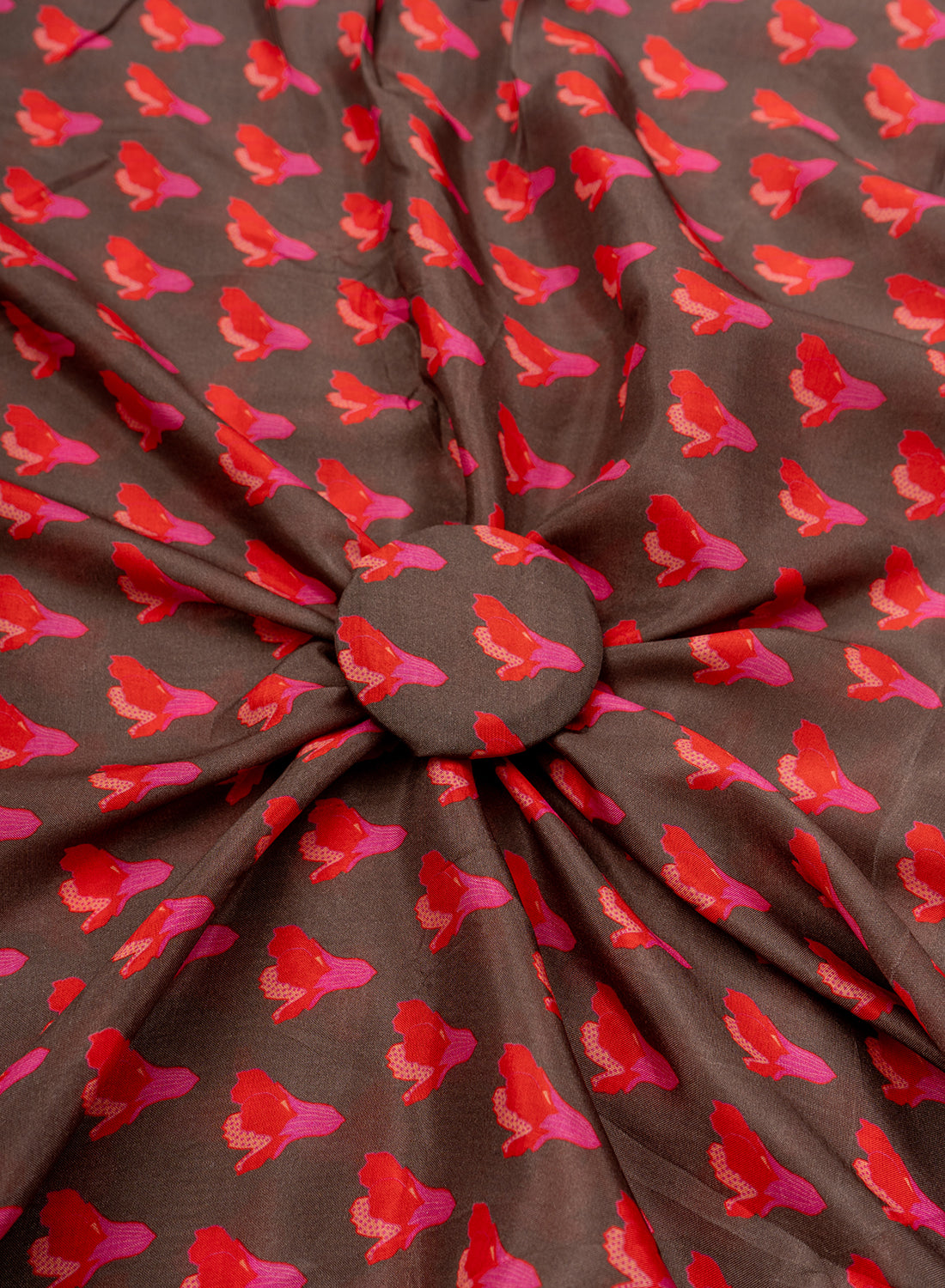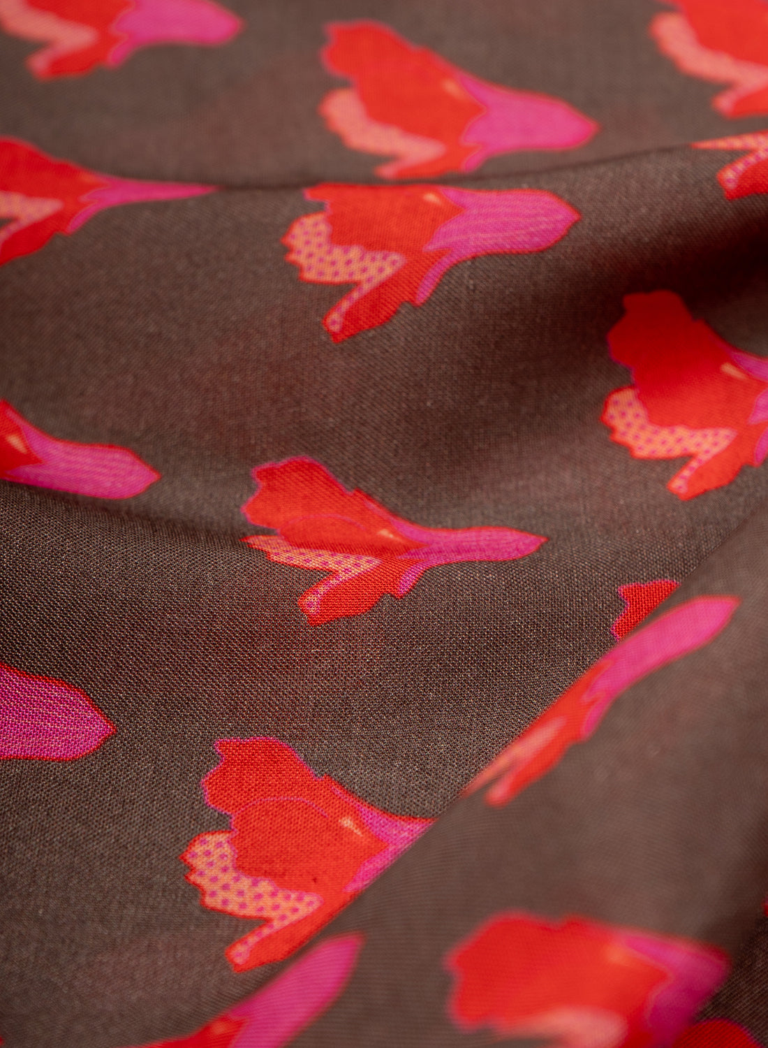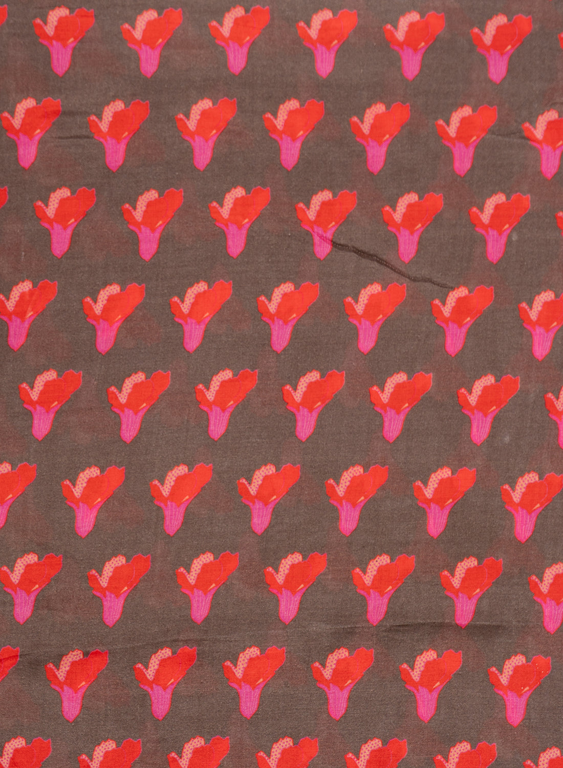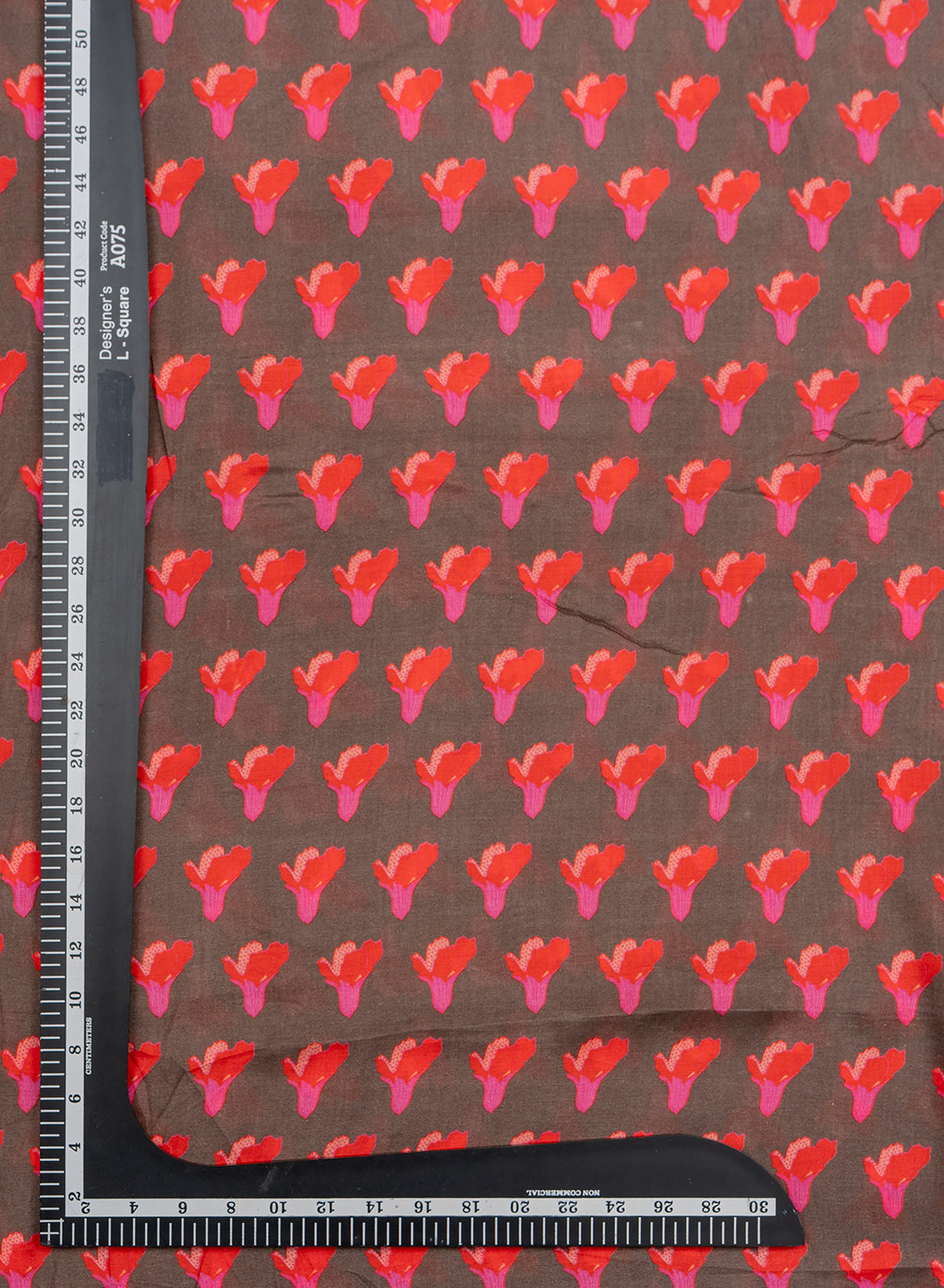 Pure Muslin Shade Of Brown Color Floral Digital Print Fabric.