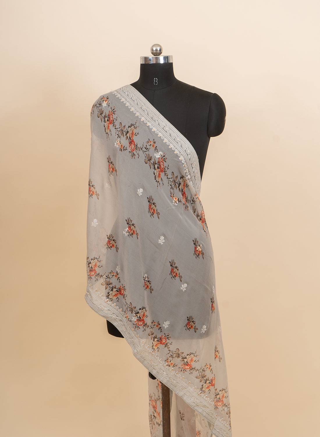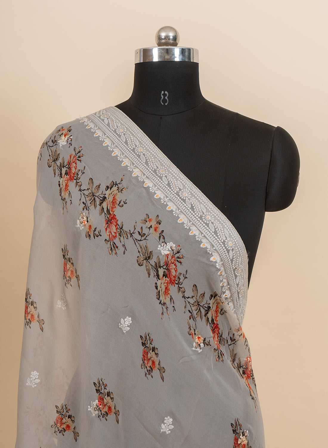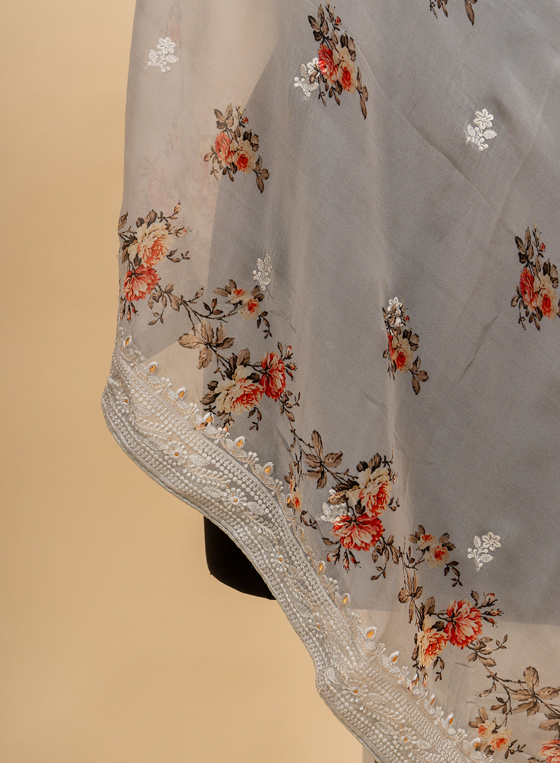 Pure Organza Grey Color Floral Digital Print Dupatta