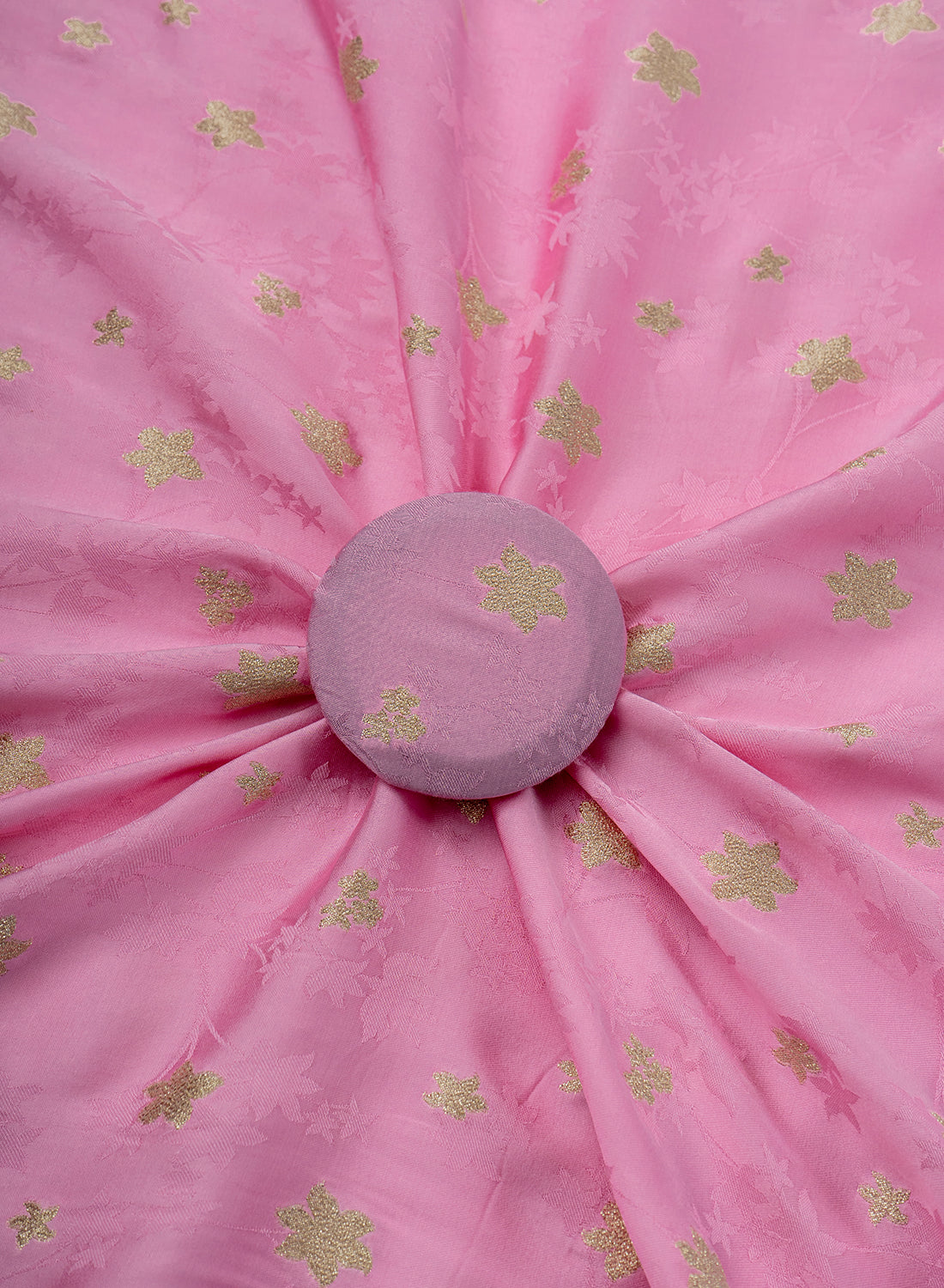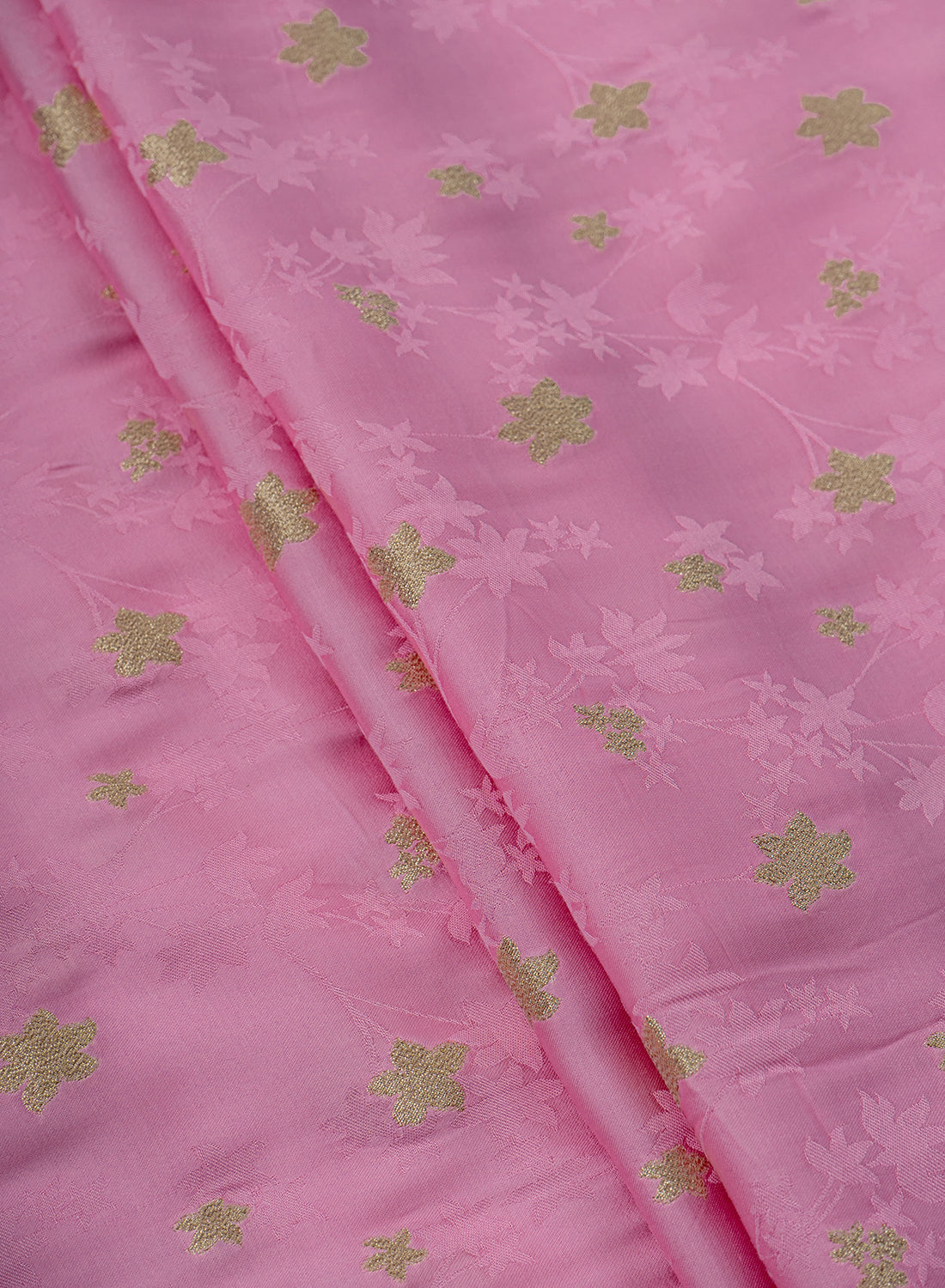 Pure Viscose Satin Baby Pink Color With Jacquard Butti Dyed Fabric