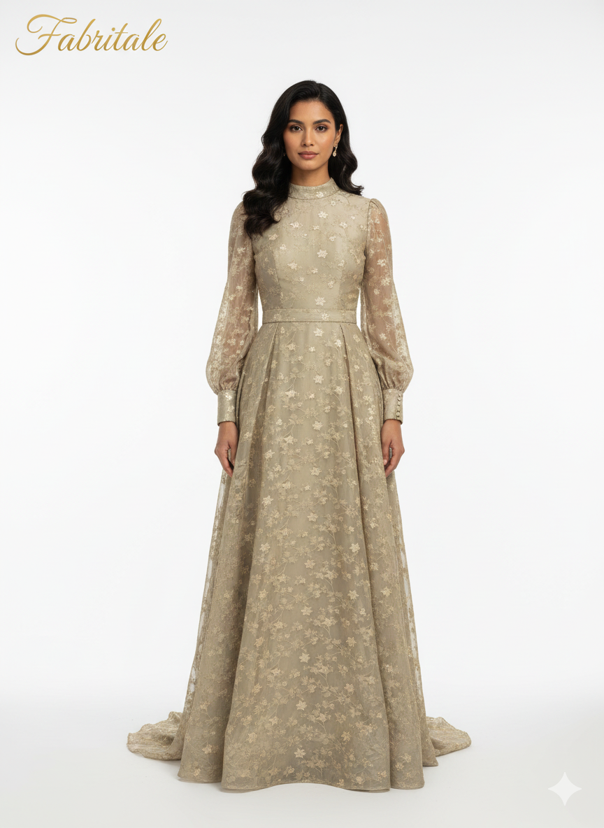 Pure Viscose Satin Biege Color With Jacquard Butti Dyed Fabric