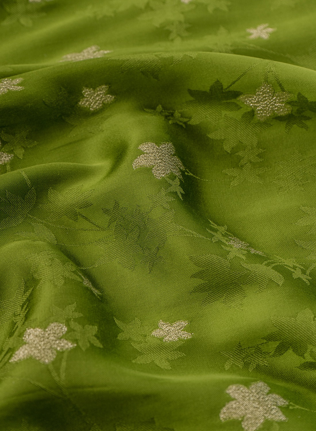 • A self jacquard weave with zari butti is added, creating an elegant and rich look.