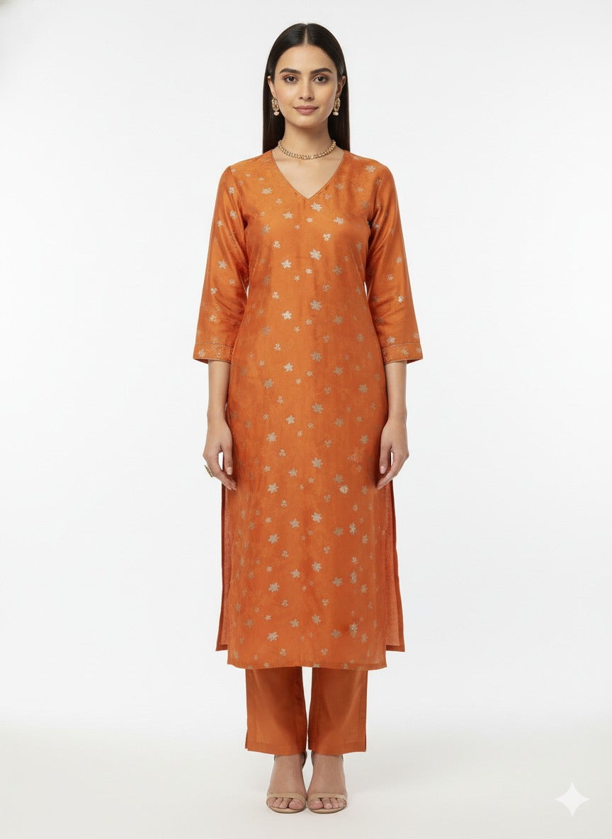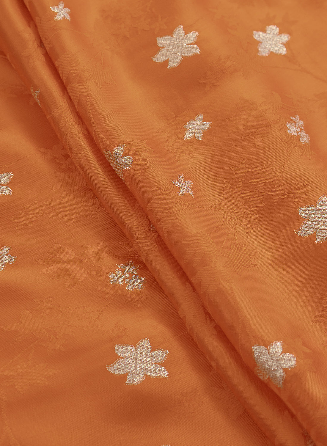 Pure Viscose Satin Orange Color With Jacquard Butti Dyed Fabric