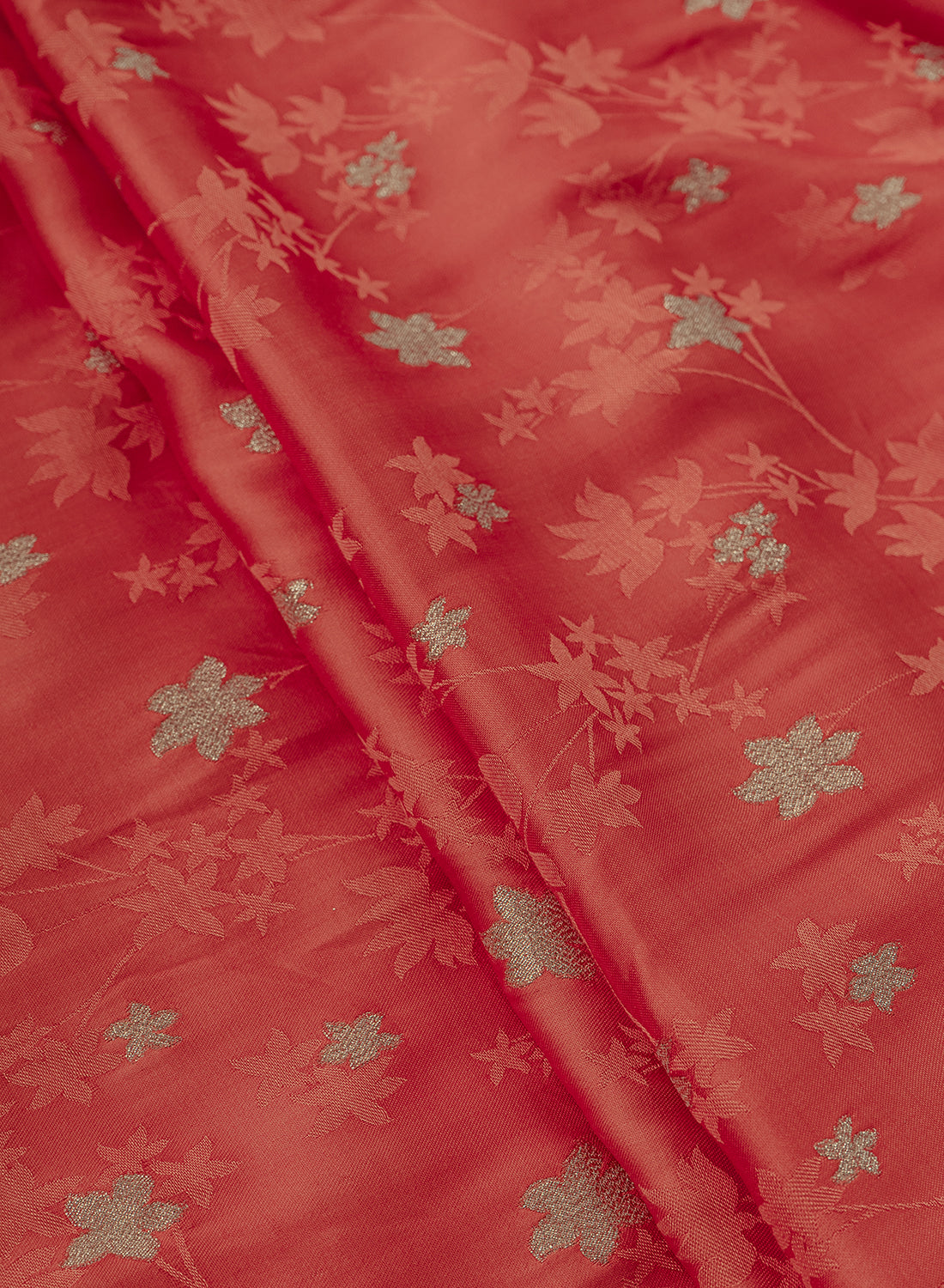 Pure Viscose Satin Red Color With Jacquard Butti Dyed Fabric
