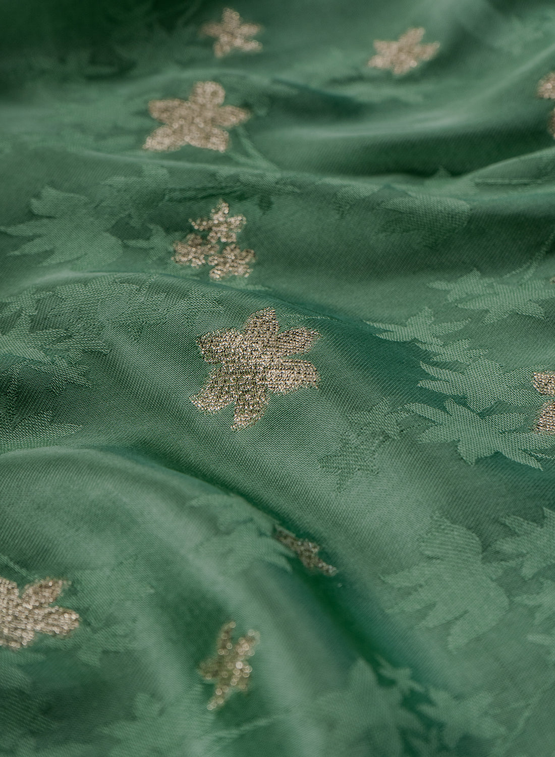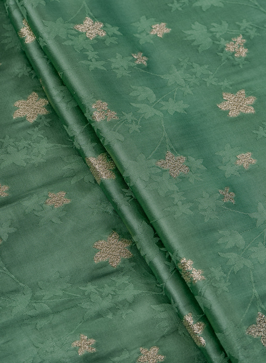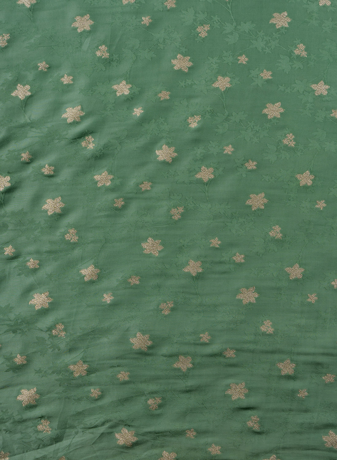 Pure Viscose Satin Sea Green Color With Jacquard Butti Dyed Fabric
