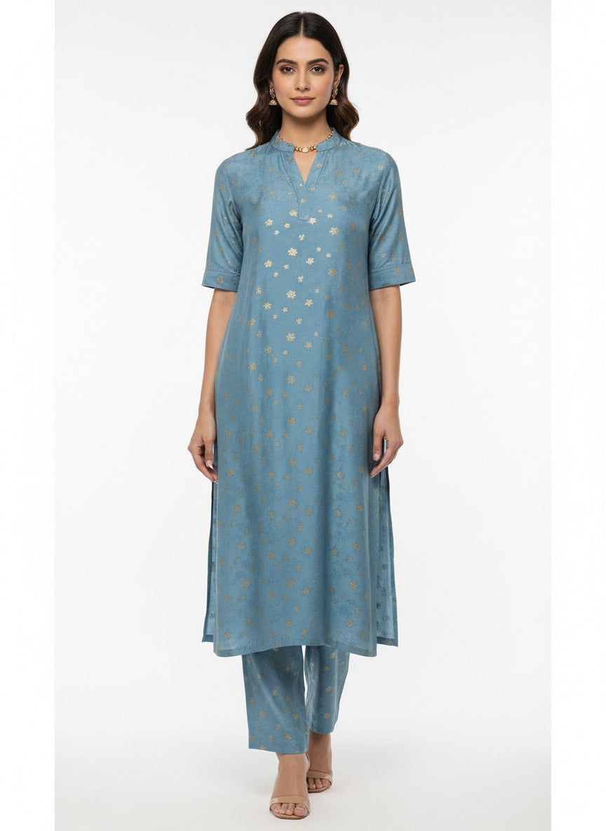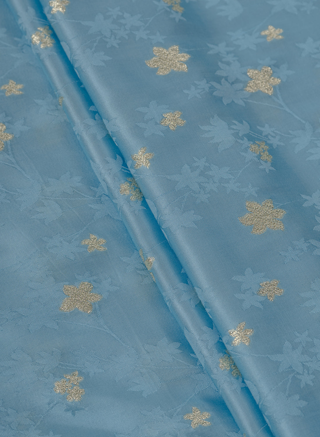 Pure Viscose Satin Sky Blue Color With Jacquard Butti Dyed Fabric