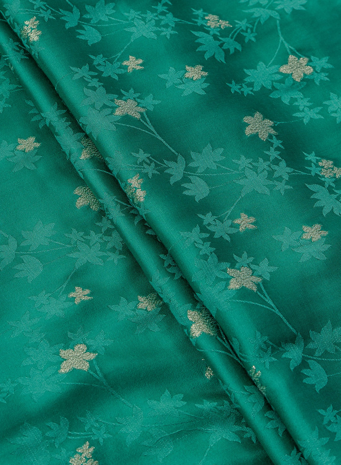 Pure Viscose Satin Teal Green Color With Jacquard Butti Dyed Fabric