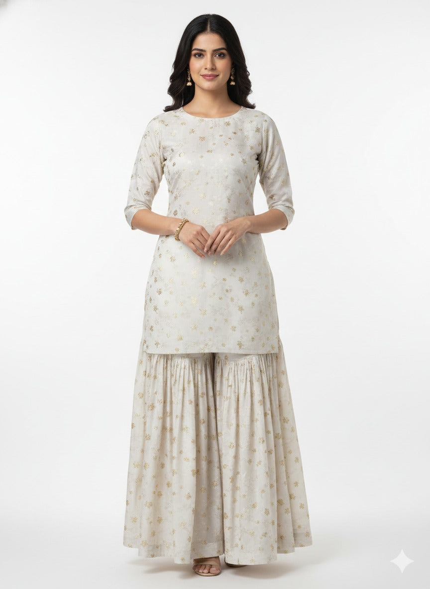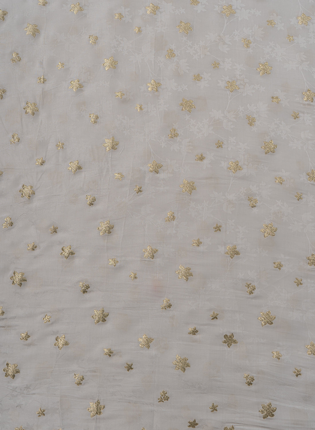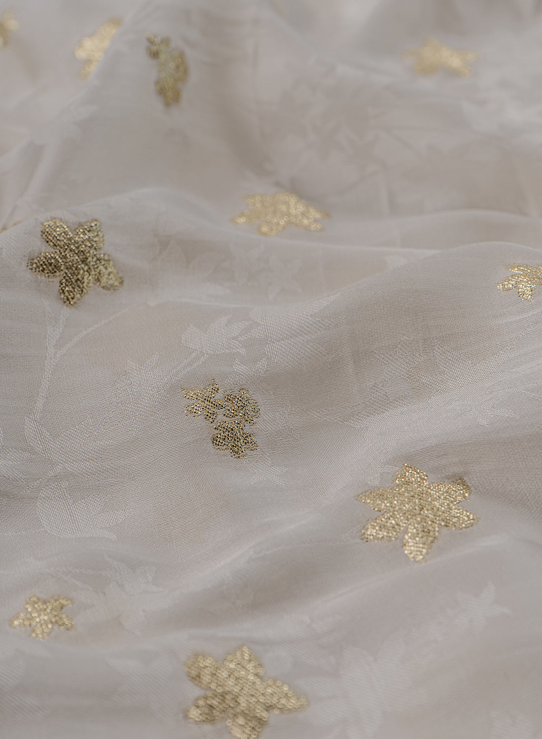 • A self jacquard weave with zari butti is added, creating an elegant and rich look.