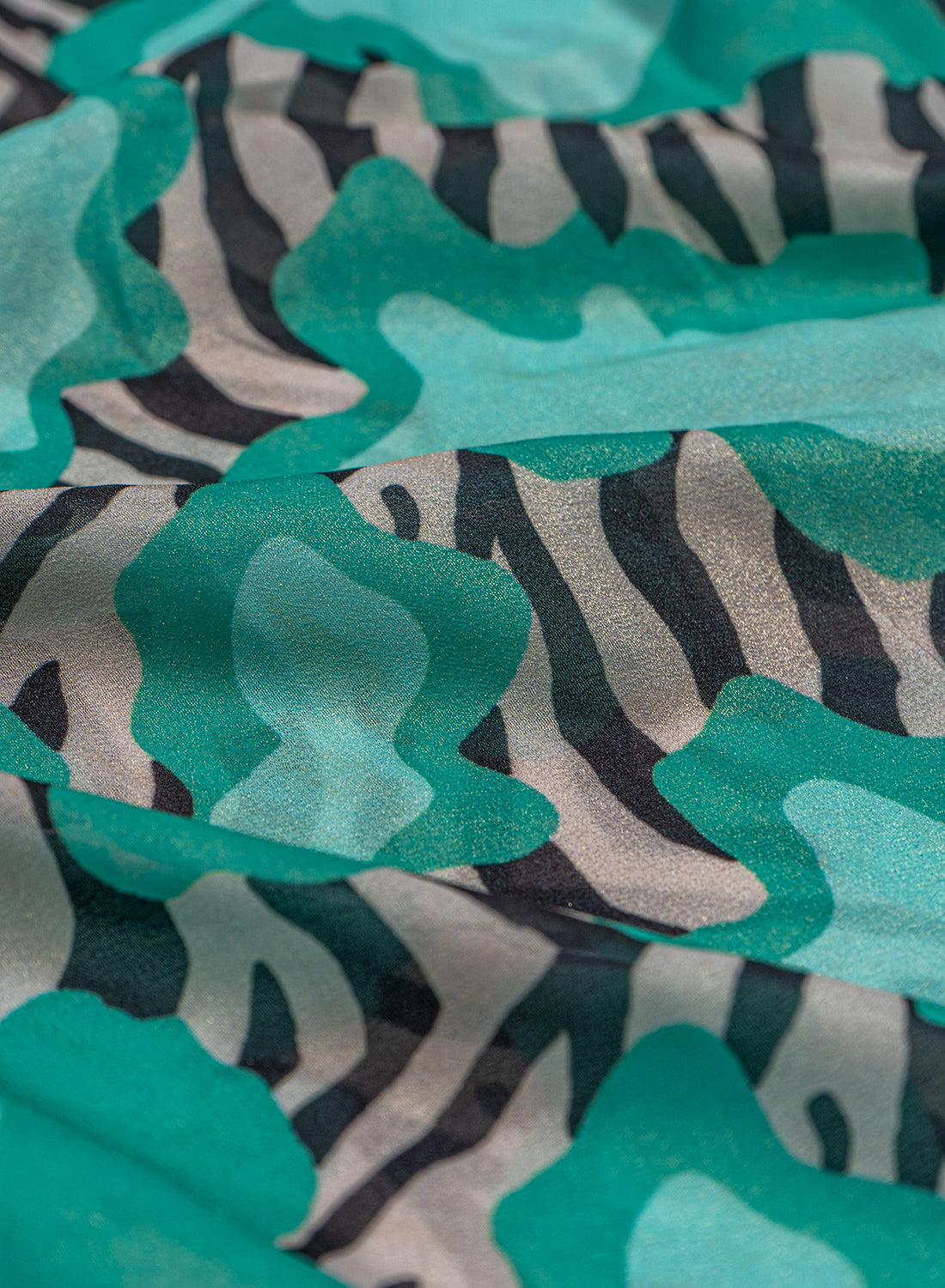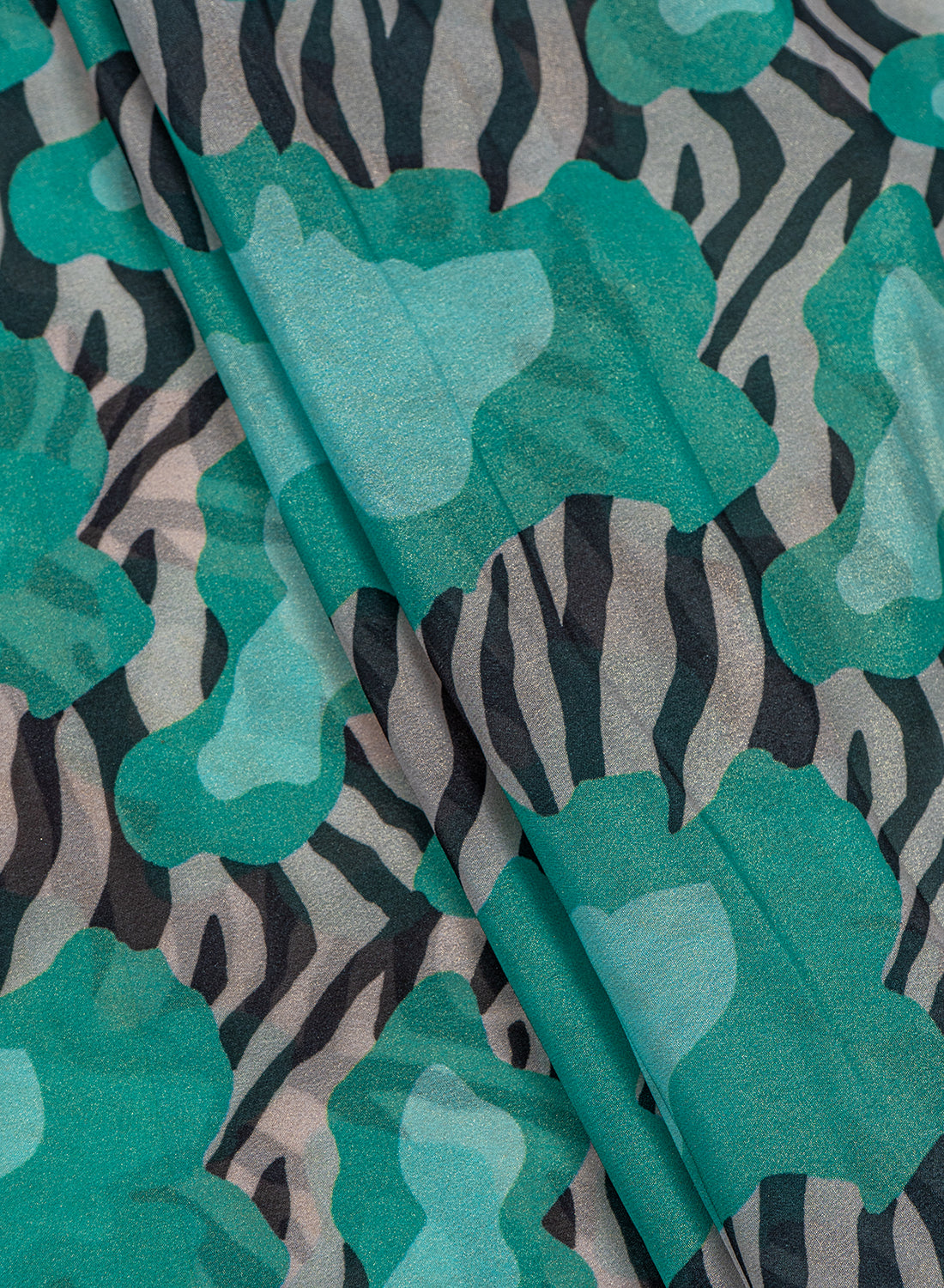 Shimmer Georgette Sea Green Color Abstract Pattern Digital Print Fabric.