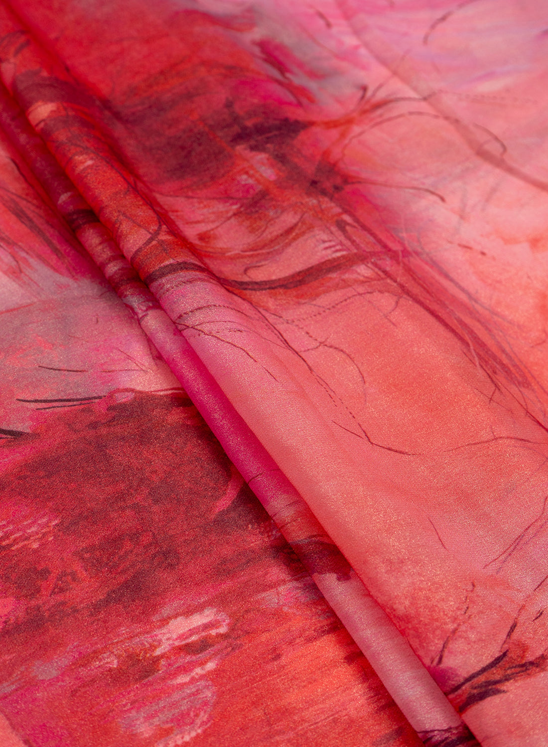 Shimmer Georgette Shades Of Pink Color Abstract Pattern Digital Print Fabric.