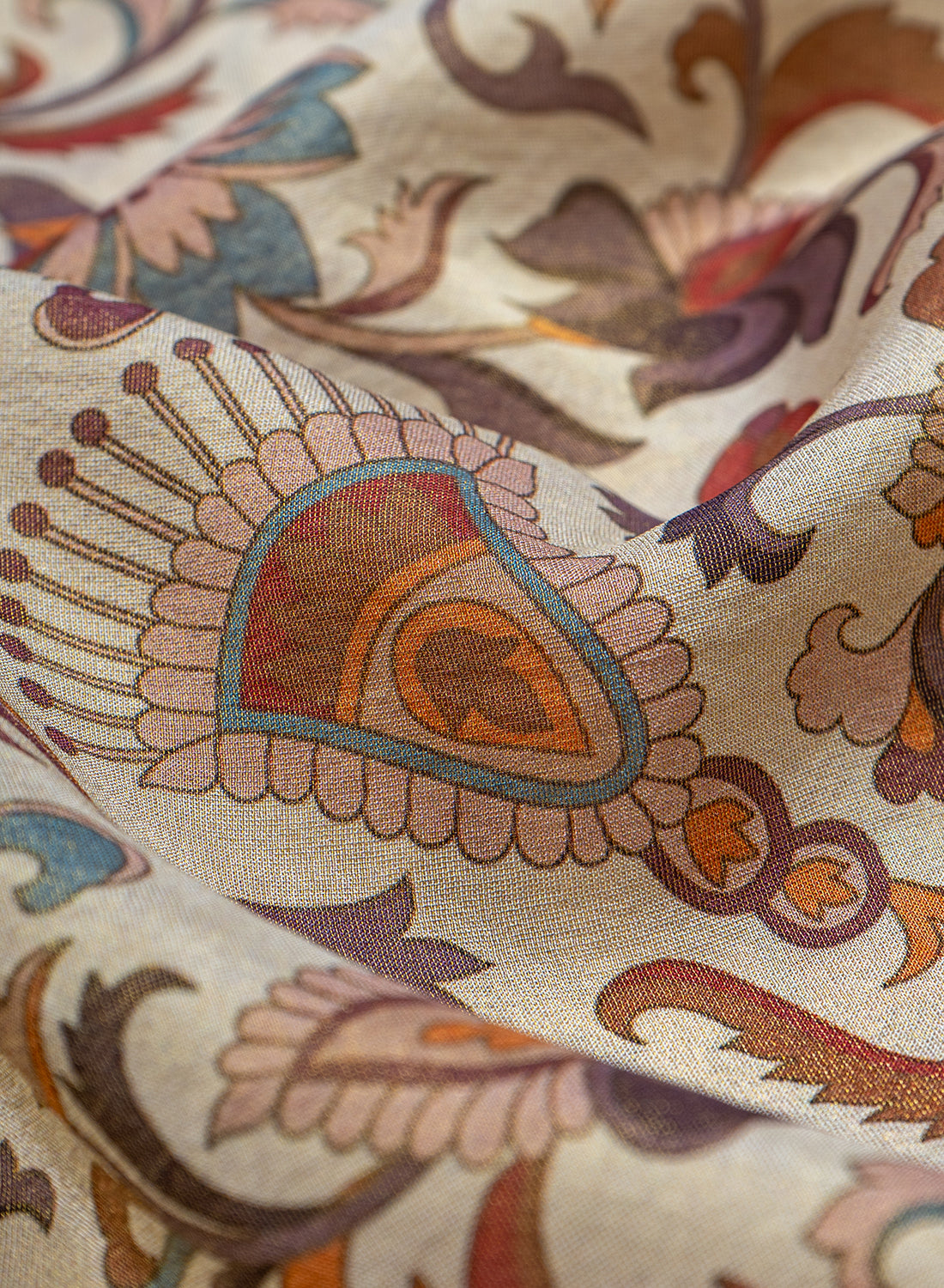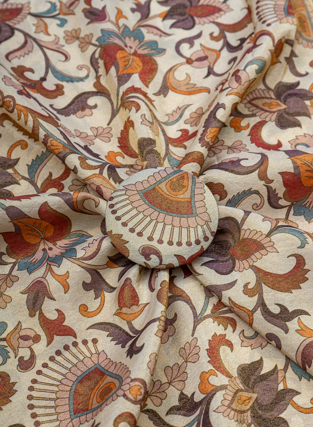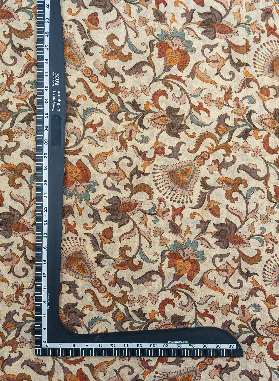 Viscose Tissue Beige Color Floral Pattern Digital Print Fabric.