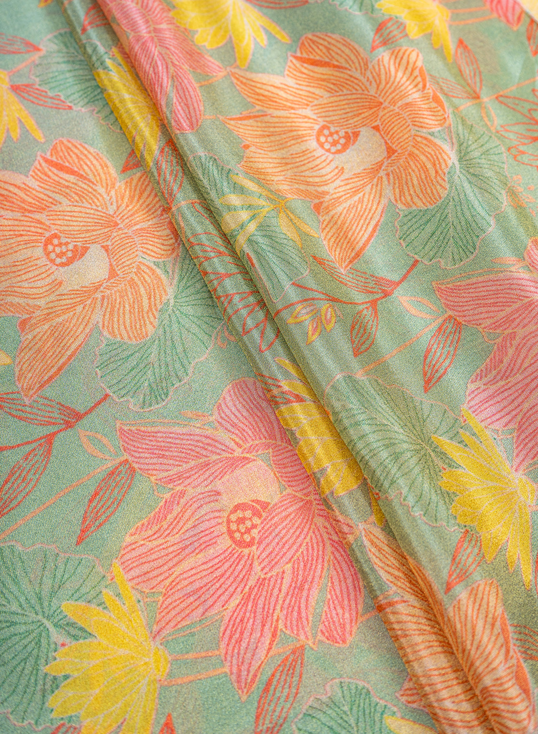 Viscose Tissue Mint Green Color Floral Pattern Digital Print Fabric.